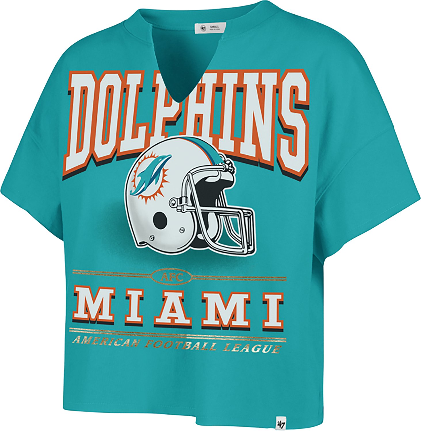 Make it clear you're a dedicated fan when you wear the 47 Women's Dolphins Elation Oversize Notch Neck T-shirt. The cotton construction helps keep you comfortable throughout the day, while the screen-printed team graphics put your fan pride front and center.
