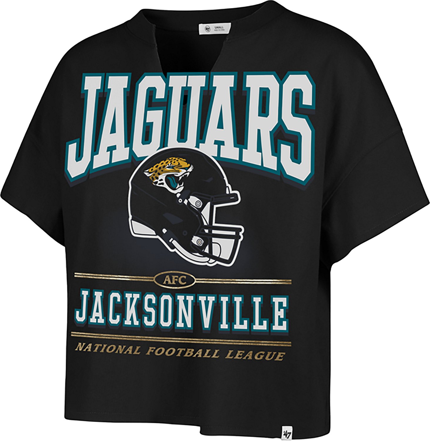 Make it clear you're a dedicated fan when you wear the 47 Women's Jaguars Elation Oversize Notch Neck T-shirt. The cotton construction helps keep you comfortable throughout the day, while the screen-printed team graphics put your fan pride front and center.