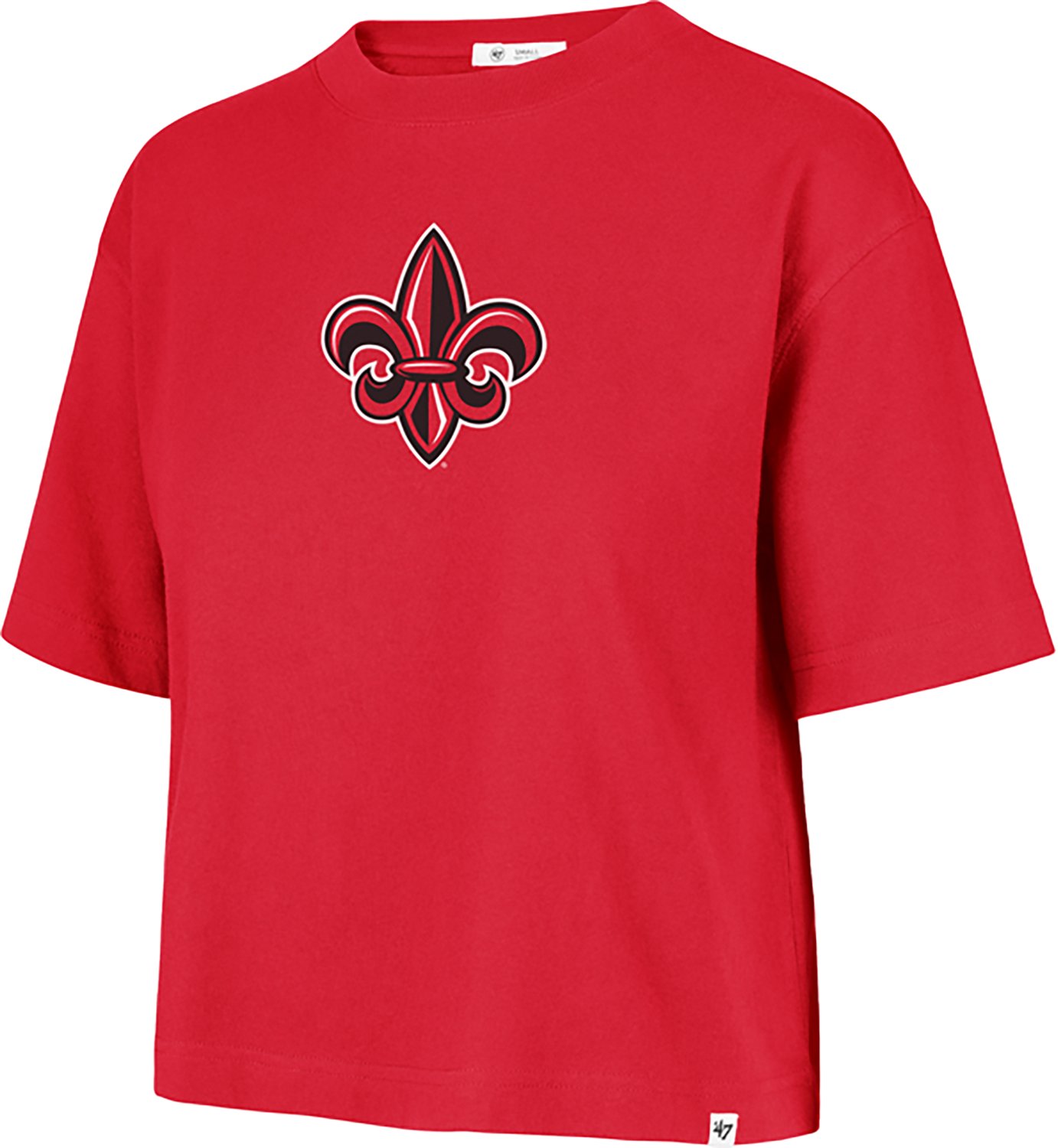 Show off your fan support when you wear the 47 Women's Louisiana-Lafayette Back Out Foundation Crop DS T-shirt. The shirt is made of 100% cotton fabric to help keep you comfortable throughout the day, while the screen-printed team design puts your fandom on display.