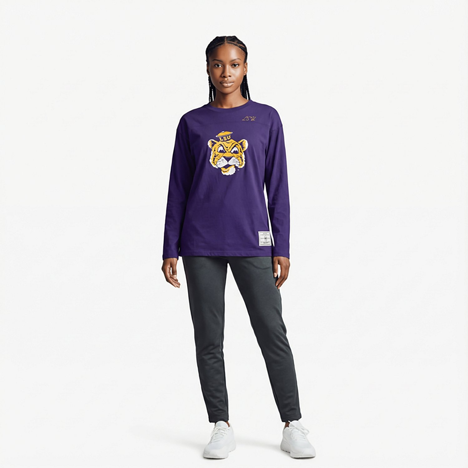 Get pumped to watch the next game by throwing on the 47 Women's LSU Game Nod Timeless 3/4 Sleeve T-shirt. This T-shirt is made of 100% heavyweight cotton jersey to help keep you feeling good and features a team graphic on the front to express your fan pride.