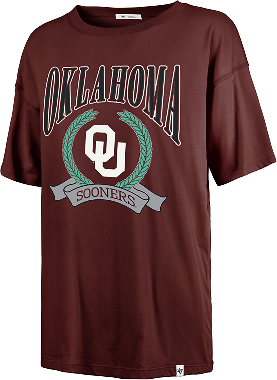 Whether you're headed to watch the game or just want to show your love, wear the 47 Women's Oklahoma Flaunt Sadie T-shirt. This T-shirt is made of lightweight cotton to provide comfort and features a distressed team graphic screen print to help celebrate with other fans.