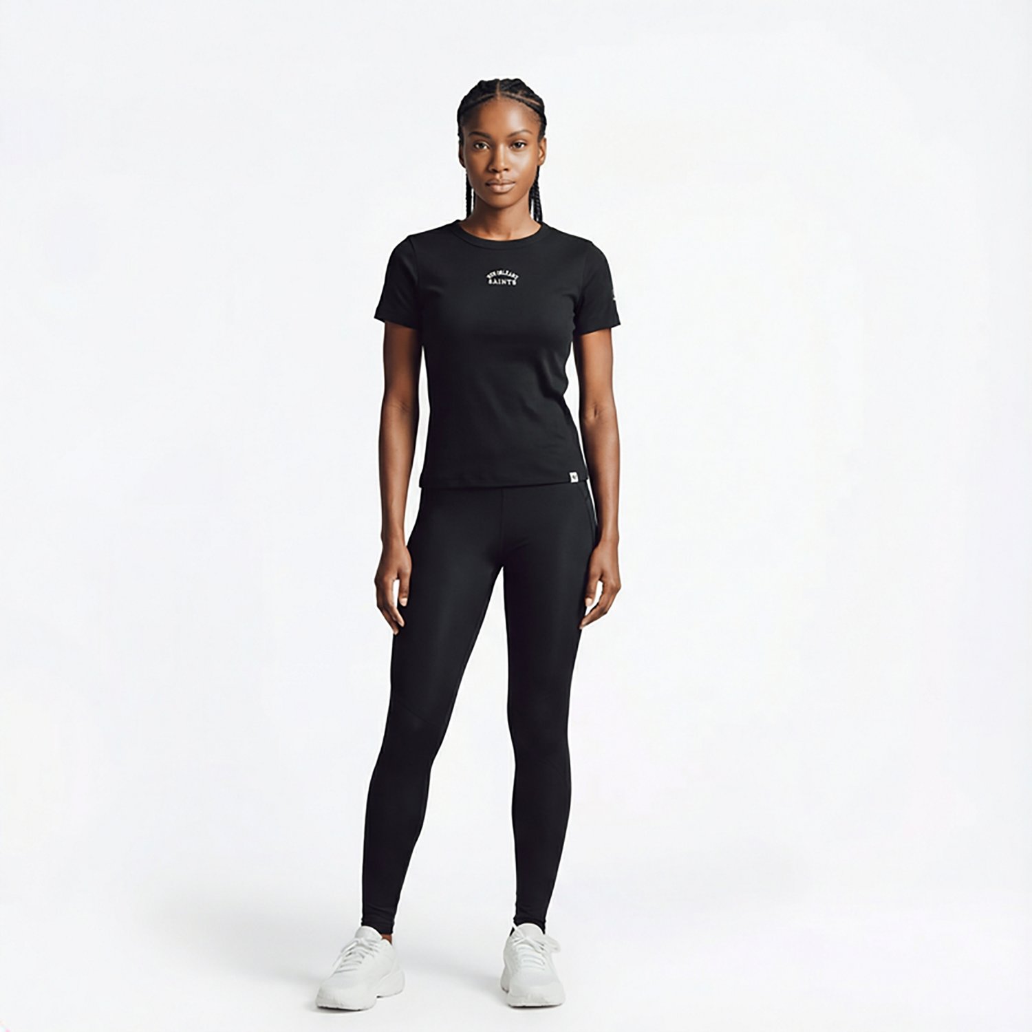 Make it clear you're a dedicated fan when you wear the 47 Women's Saints Spirited Ribbed Baby T-shirt. The cotton and elastane construction helps keep you comfortable throughout the day, while the screen-printed team graphic lets everyone know who you cheer for on game day.