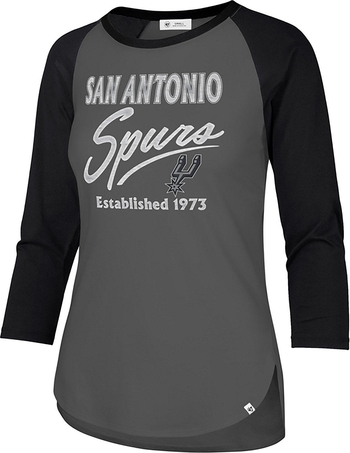 Cheer on your favorite NBA team in vintage style with the '47 Women's San Antonio Spurs High Rise Frankie Raglan T-shirt. The cotton material creates a soft, lived-in feel for all-day comfort, while the distressed team graphic shows your support for the Spurs.
