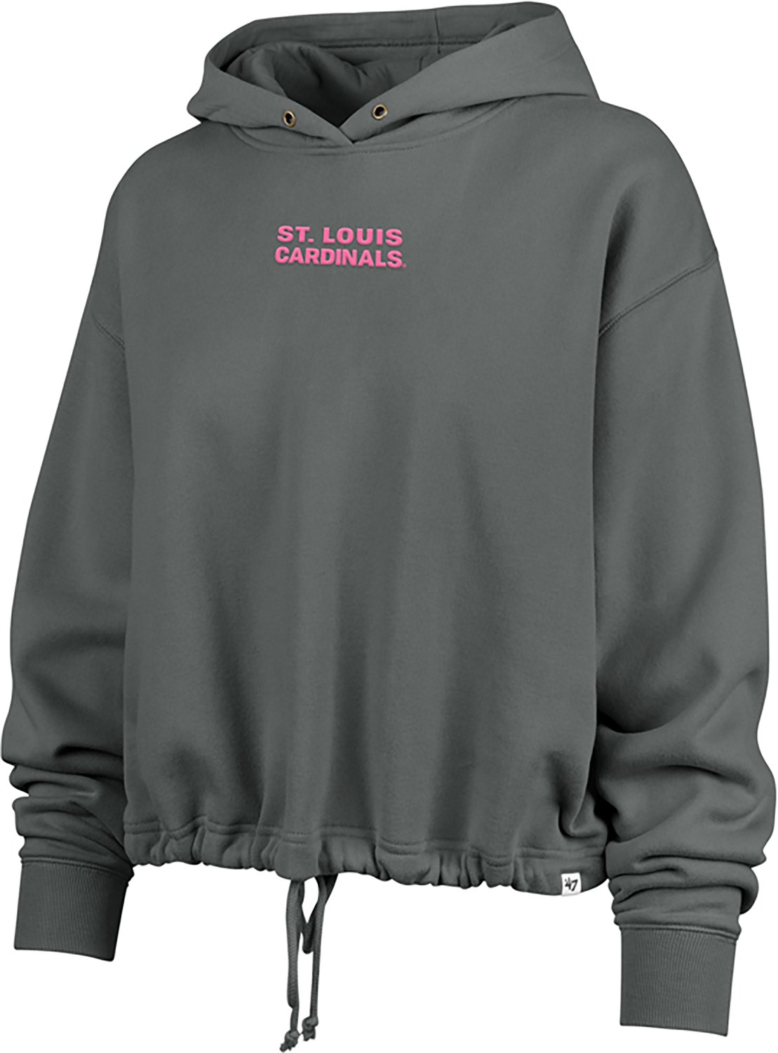 Root for your favorite team when you wear the '47 Women's St. Louis Cardinals Bright Side Venice Long Sleeve Hoodie. It is made of 60% cotton and 40% polyester. The Emerson fleece lining adds warmth and comfort, and its drawstring waist creates an adjustable fit. The screen printed St. Louis Cardinals graphics on the front center, back center, and sleeves show off your team spirit.