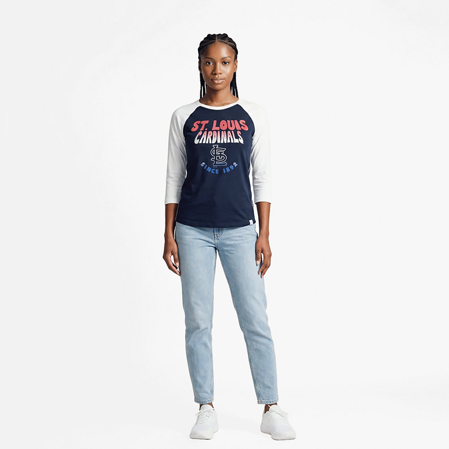 Put your fan pride front and center when you wear the '47 Women's St. Louis Cardinals Harmony Ava Raglan T-shirt. The 100% combed, ringspun cotton construction delivers a soft, comfortable feel, while the screen-printed team graphic makes it clear you're a loyal fan.