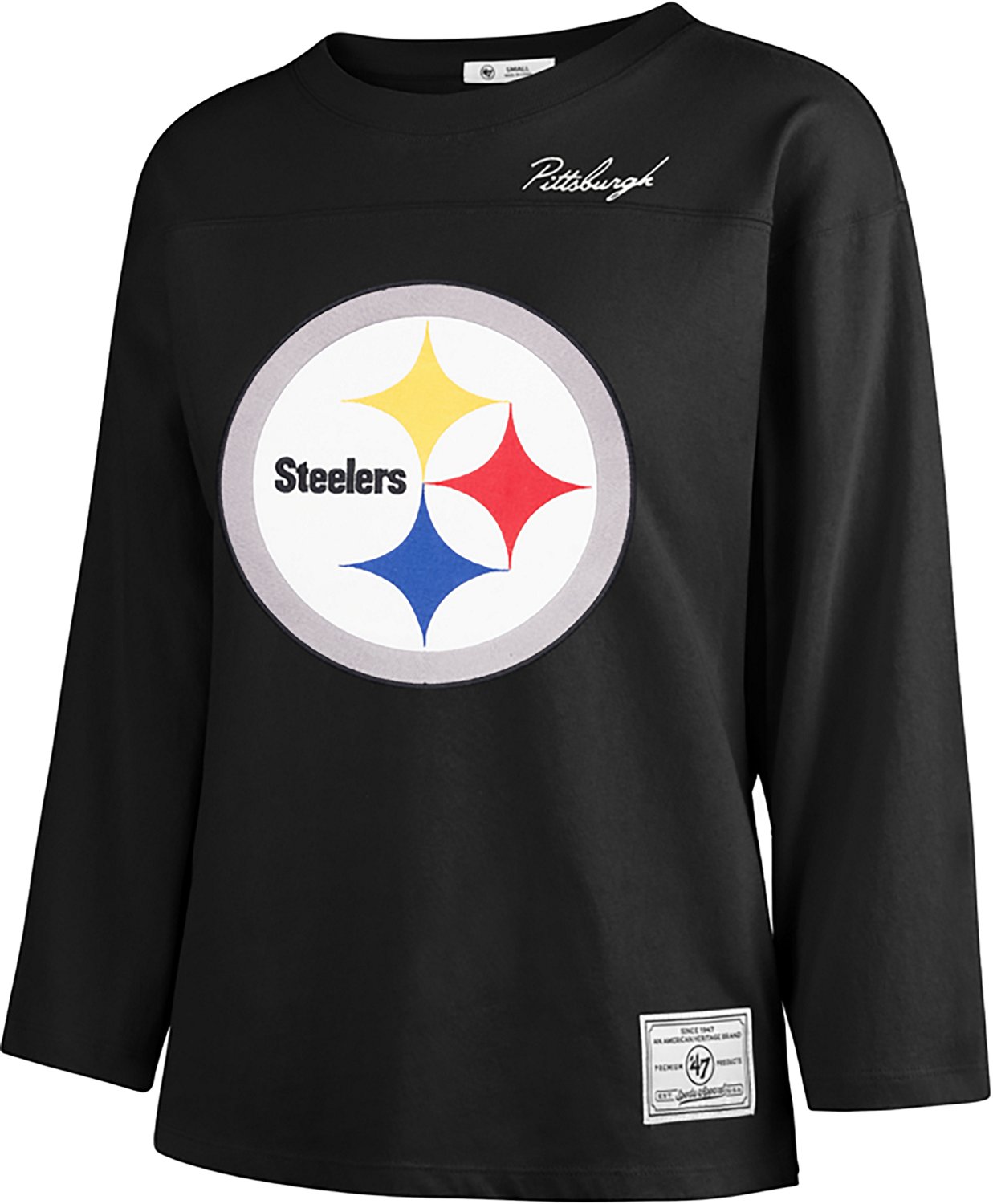 Get pumped to watch the next game by throwing on the 47 Women's Steelers Game Nod Timeless T-shirt. This T-shirt is made of 100% heavyweight cotton jersey to help keep you feeling good and features a team graphic on the front to express your fan pride.