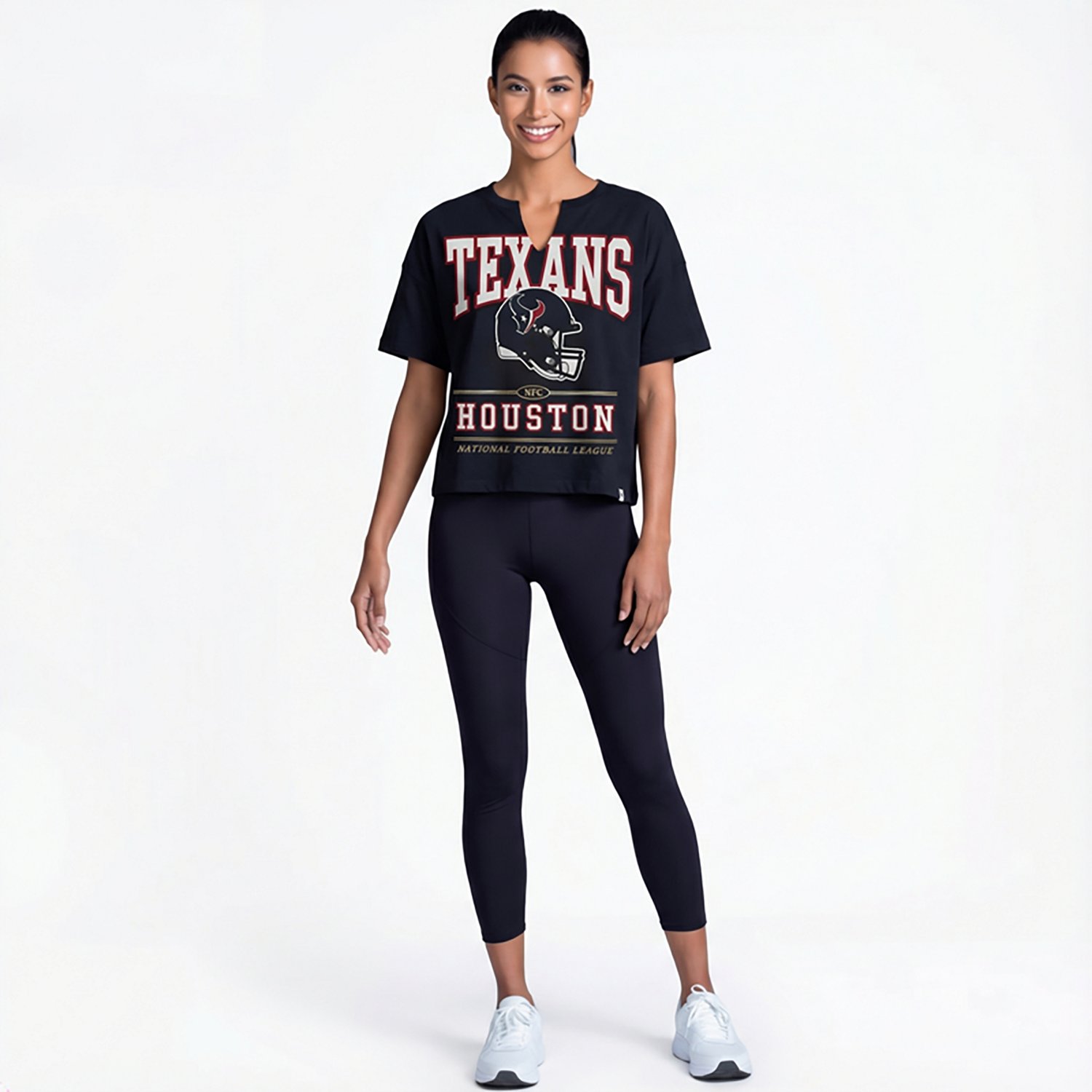 Make it clear you're a dedicated fan when you wear the 47 Women's Texans Elation Oversize Notch Neck T-shirt. The cotton construction helps keep you comfortable throughout the day, while the screen-printed team graphics put your fan pride front and center.