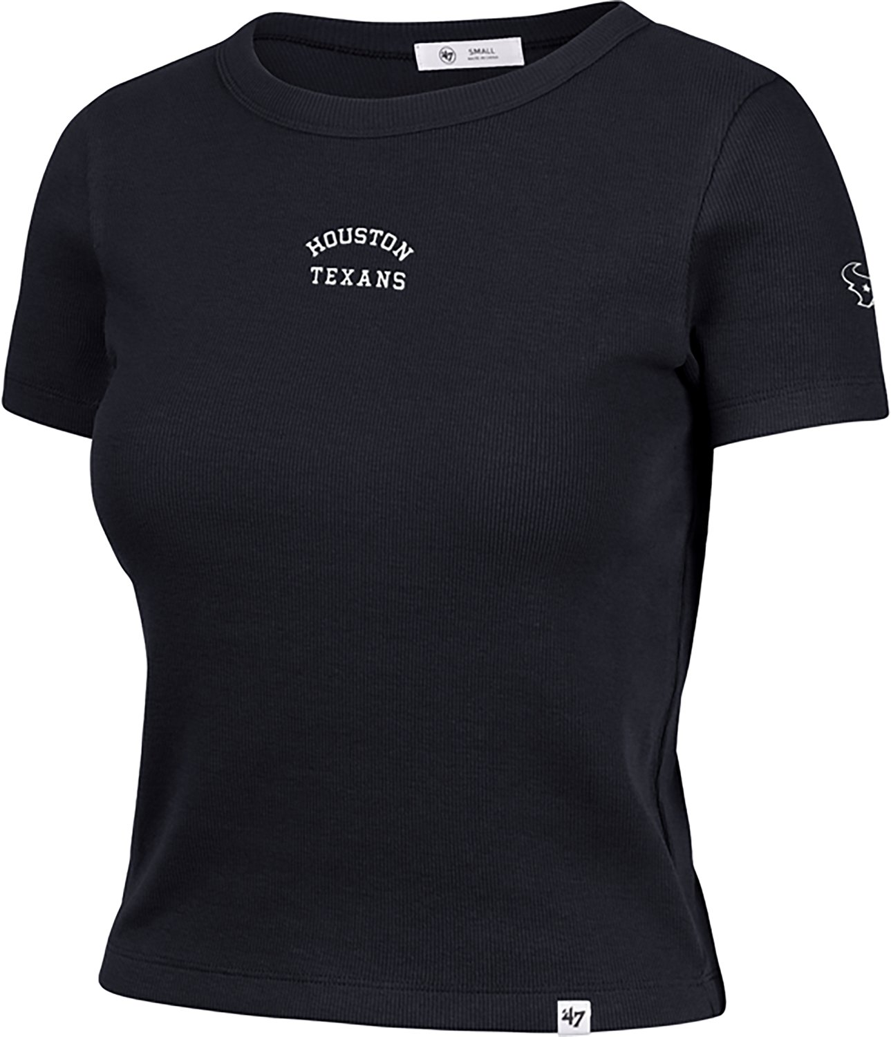 Make it clear you're a dedicated fan when you wear the 47 Women's Texans Spirited Ribbed Baby T-shirt. The cotton and elastane construction helps keep you comfortable throughout the day, while the screen-printed team graphic lets everyone know who you cheer for on game day.