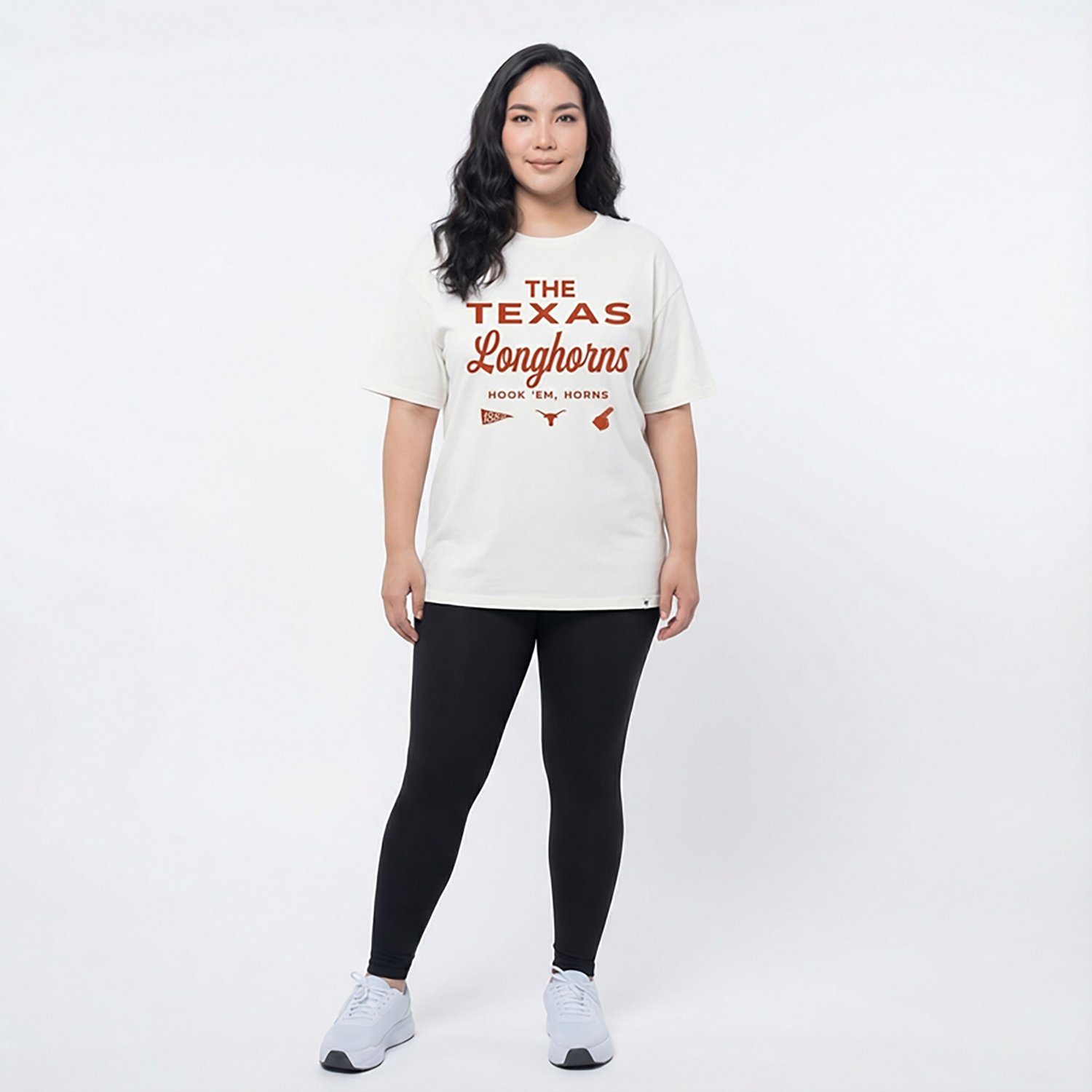 Root for your favorite team when you wear the '47 Women's Texas Longhorns Show Off Sadie Short Sleeve T-shirt. It is made of 100% cotton. The crew neckline creates a casual look, and its drop shoulders create an oversized look. The screen printed Texas Longhorns graphic on front and back shows off your team spirit.