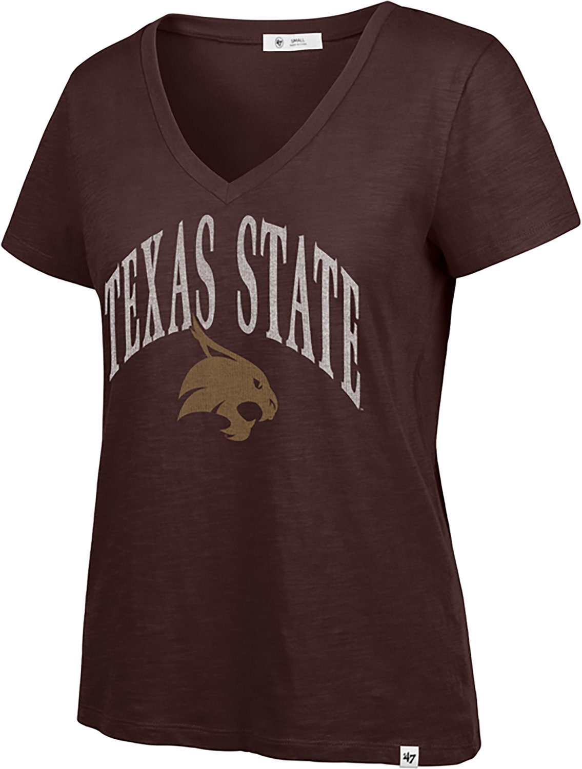 Cheer your favorite team on during every game while wearing the 47 Women's Texas State Tried N True Slub V-neck T-shirt. This T-shirt is made of slub jersey for lasting softness and features a team screen print to prove your loyalty.