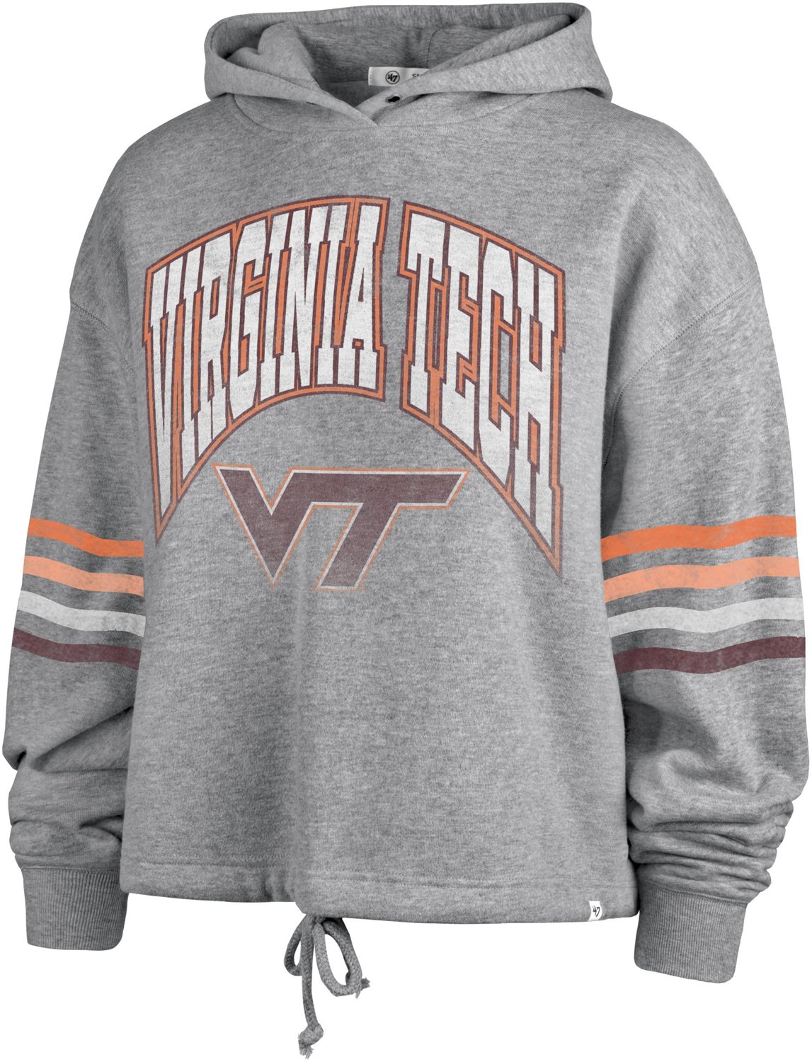 Wear the '47 Women's Virginia Tech Upland Bennet Hoodie and share your love for the Hokies. The hoodie is made of cotton and polyester material for comfort, and it features a distressed screen-printed team graphic to add a touch of style.