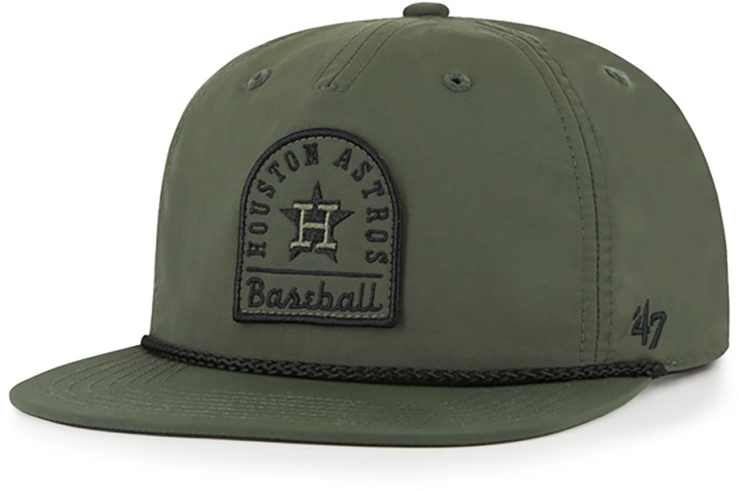 The '47 CAPTAIN has a structured crown, flat visor, and an adjustable snapback with raised embroidery on the front and flat embroidery on the side. Made from nylon.