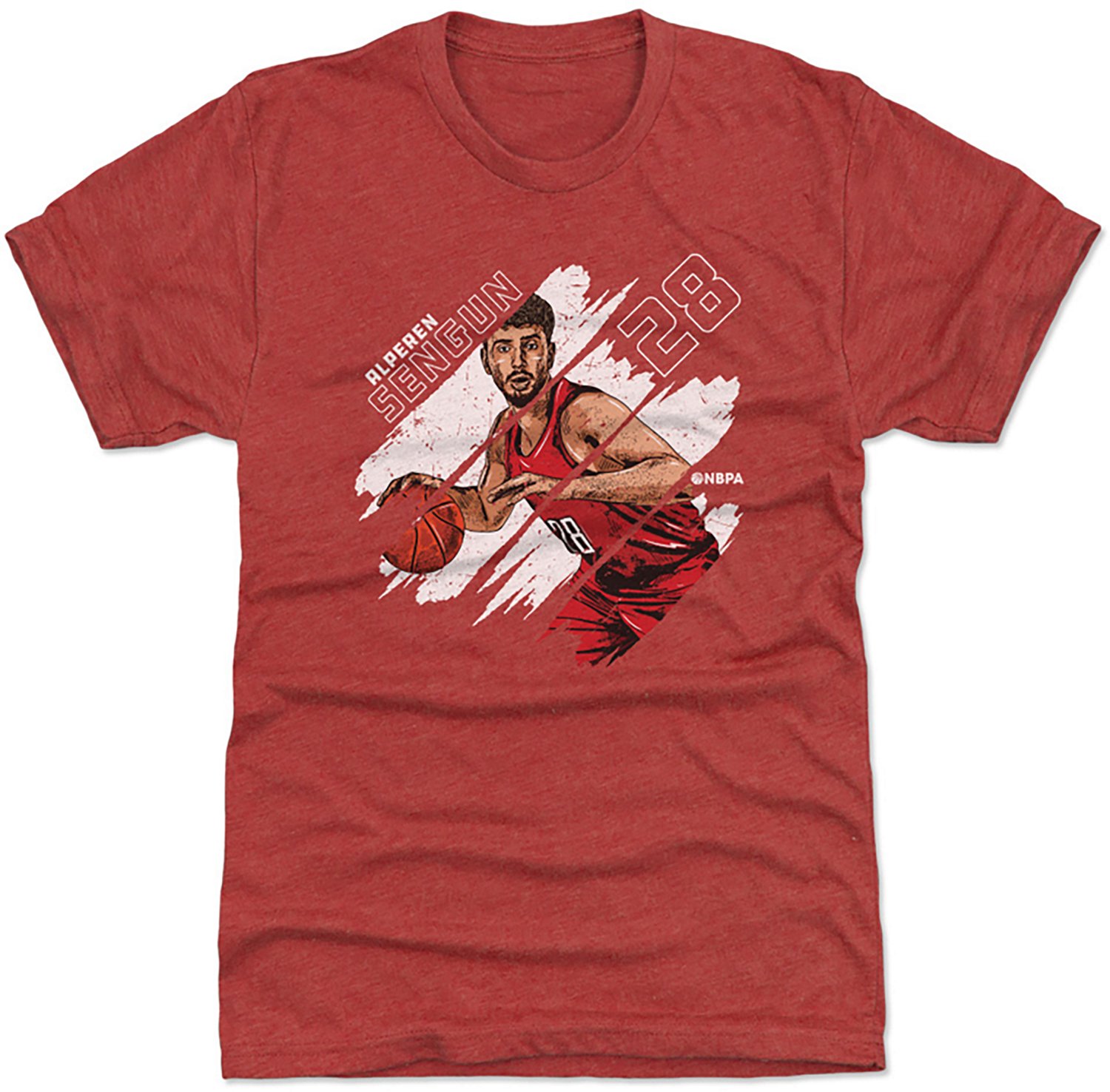 Showcase your favorite team and player with the 500 Level Men's Houston Rockets Alperen Şengün Stripes Short Sleeve T-shirt. It is made of 100% cotton. The crew neck offers a casual style, and its short sleeves keep you cool. The graphic of the Houston Rockets' Alperen Şengün is digitally printed on, showing off your team spirit.