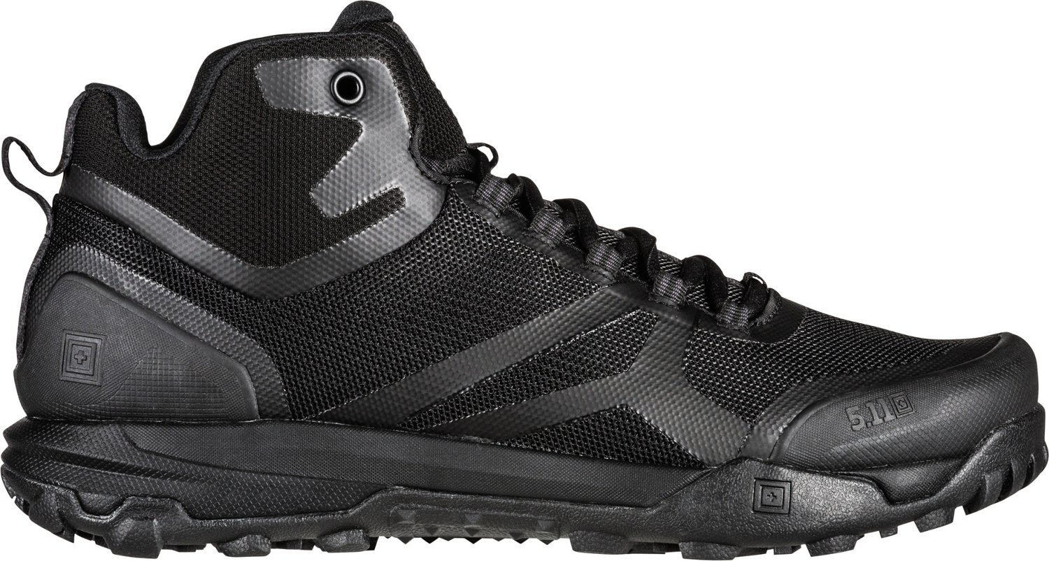 Work smarter and not harder wearing the 5.11 Tactical Men's A/T Mid-Height Boots. The Echo, PU and Force foam midsoles absorb impact and transfer energy back into your stride, and the All Terrain Load Assistance System provides support with heavy lifting. The ASTM slip- and oil-resistant outsoles allow for optimal grip and traction on slippery surfaces.