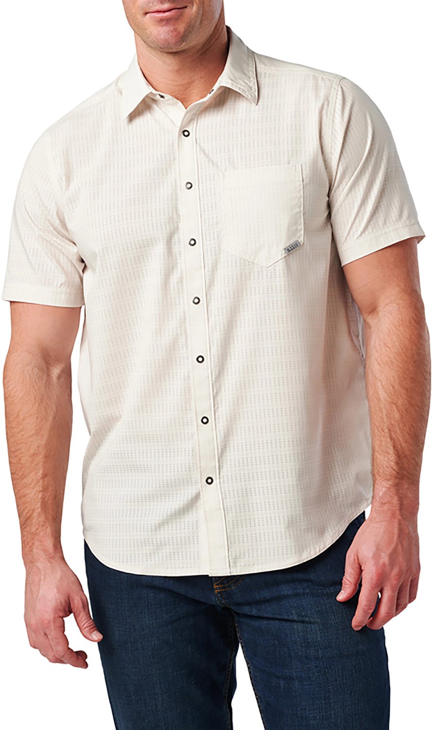 Step out feeling confident and comfortable with the 5.11 Tactical Men's Aerial Short Sleeve Shirt. The 100% polyester construction offers long-lasting use, and the logo woven label at the bottom of the chest pocket displays your brand pride. The moisture-wicking technology delivers a dry feel, and the left chest patch pocket provides room to conceal items.