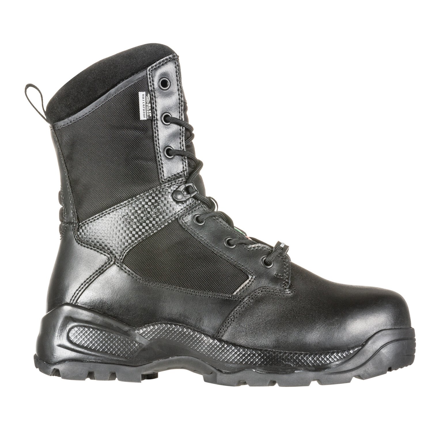 Take on the challenges of day with confidence underfoot when you wear the 5.11 Tactical Men's A.T.A.C. 2.0 Shield 8 in Side Zip Tactical Boots. The leather and nylon uppers offer durability and feature SipStream® waterproof and Blood Bourne Pathogen resistant membranes for protection. The Ortholite® full length, dual-density insoles help keep your feet dry and feature Ortholite® X25 foam and Ortholite® Lazy recovery foam layers to supply plush, responsive cushioning. The Achilles heel flex zones provide support, mobility and flexibility, while the ATAC midsoles and outsoles with a Shock Mitigation System® offer slip and oil resistant traction and additional protection.