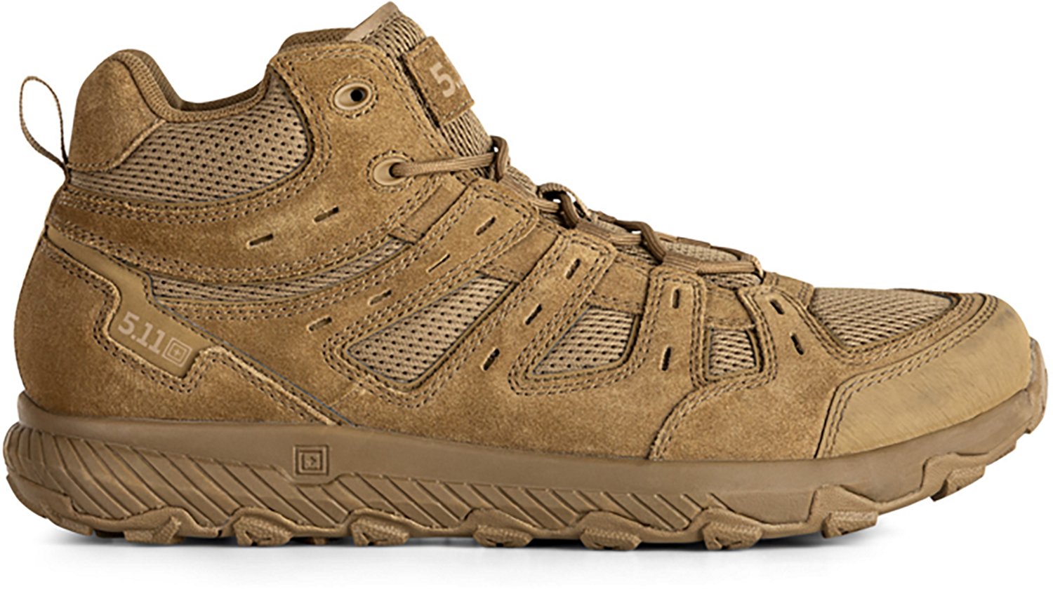 Keep your feet from complaining when you lace up a pair of 5.11 Tactical Men's Ranger 2.0 Mid Tactical Boots. These rugged boots cushion and support your feet with compromising on protection. Suede leather uppers combined with breathable mesh are lightweight and help your feet stay cool. Cushioned insoles and outsoles support and cradle your feet, while rubber toe caps and removable support plates protect your feet.
