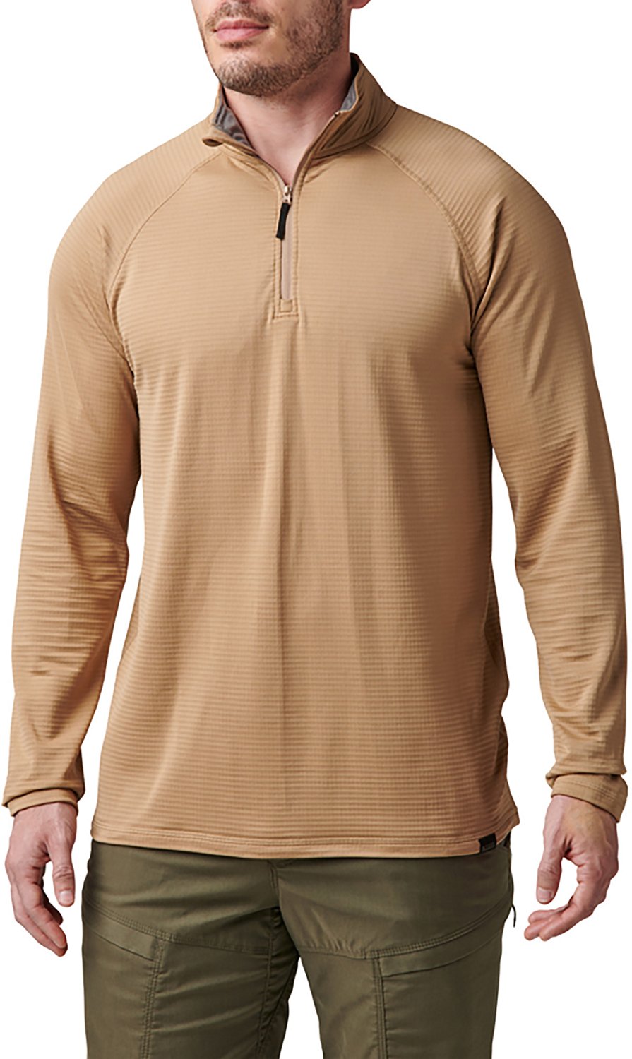 Step out feeling confident in the 5.11 Tactical Men's Stratos 1/4 Zip Long Sleeve Pullover. The 91% polyester and 9% elastane grip jersey construction offers a stretchy feel all day, and the moisture-wicking technology delivers a dry feel. The woven logo label at the front left hem displays your brand pride, and the brushed tricot lined inner collar provides additional comfort.