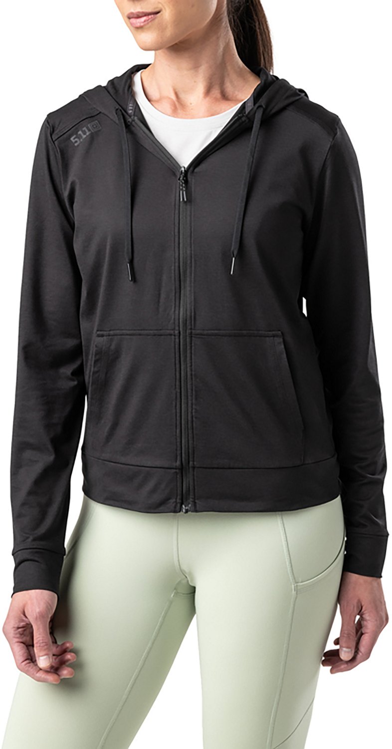Grab the 5.11 Tactical Women's PT-R Emily Full Zip Hoodie and stay warm and cozy during athletic activity. The hoodie features moisture-wicking and anti-odor finishes to help you feel dry and comfortable, and its polyester and elastane construction offers a soft and stretchy feel. It has a kangaroo pocket to store your things.