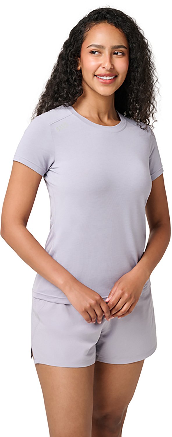 Get ready to dominate a workout or take on a trail while wearing the 5.11 Tactical Women's PT-R Interval T-shirt. This shirt is made of polyester, lyocell and elastane jersey for stretchy comfort and features a polyester mesh lower back to provide breathability, and its moisture-wicking design makes it easy to stay cool and dry.