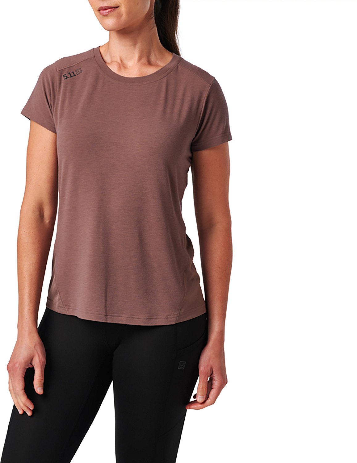Get ready to dominate a workout or take on a trail while wearing the 5.11 Tactical Women's PT-R Interval T-shirt. This shirt is made of polyester, lyocell and elastane jersey for stretchy comfort and features a polyester mesh lower back to provide breathability, and its moisture-wicking design makes it easy to stay cool and dry.