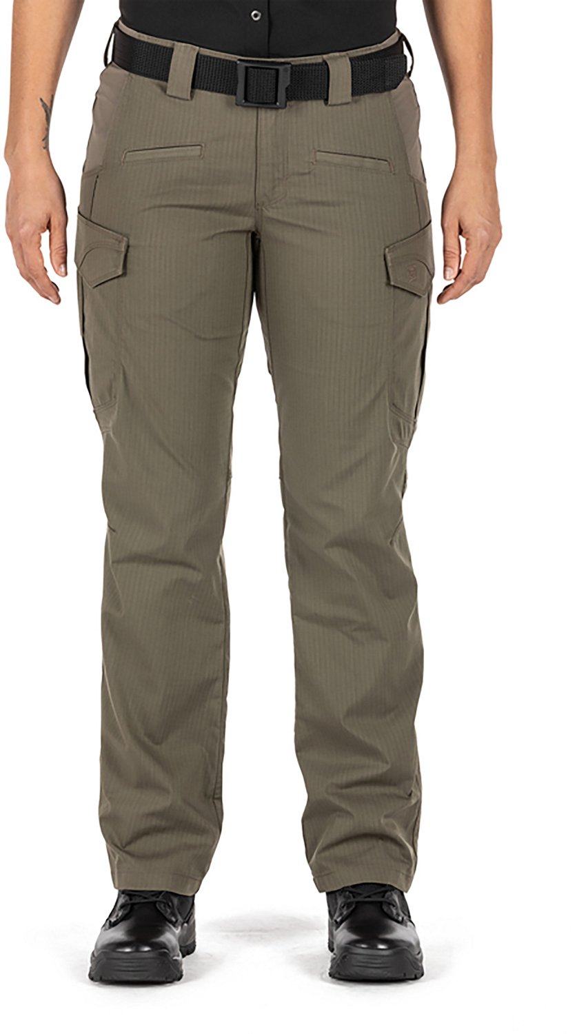 Step out feeling confident in the 5.11 Women's Icon Pants. The 80% polyester and 20% cotton Flex-Tac® ripstop construction offers a soft and stretchy feel all day, and the woven logo label at the bottom of the cargo pocket displays your brand pride. The embroidery at the left cargo pocket and back right pocket flaps adds a fashionable touch, and the gusseted build delivers additional strength.