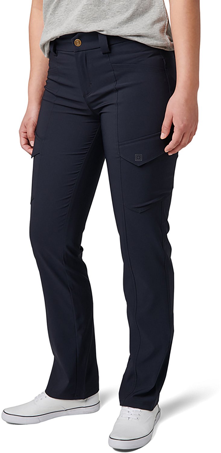 Step out feeling confident in the 5.11 Women's Shella Pants. The 89% polyester and 11% elastane construction offers a stretchy feel all day, and the logo reflective heat transfer at back right pocket displays your brand pride. The reflective heat transfer at left cargo pocket adds a fashionable touch, and the UPF 50+ technology delivers protection.