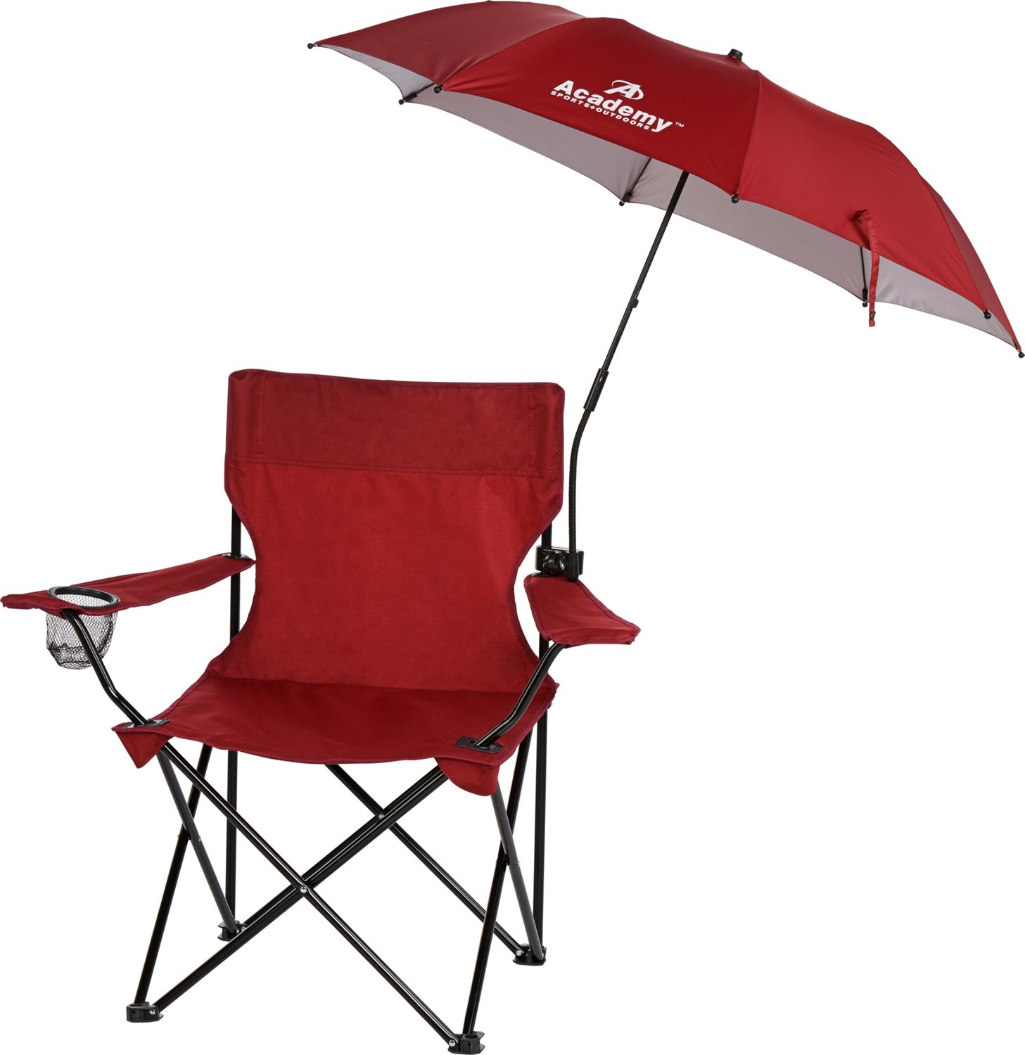 Enjoy a hot summer day with the Academy Sports + Outdoors™ 3.4' Clamp-On Umbrella, which features UPF 50 sun protection. This umbrella is designed with a bottom clip that attaches to most folding chairs (chair not included) and a flexible shaft for adjustable shade coverage. 2-piece construction allows quick and easy breakdowns. Includes a matching polyester carry bag.