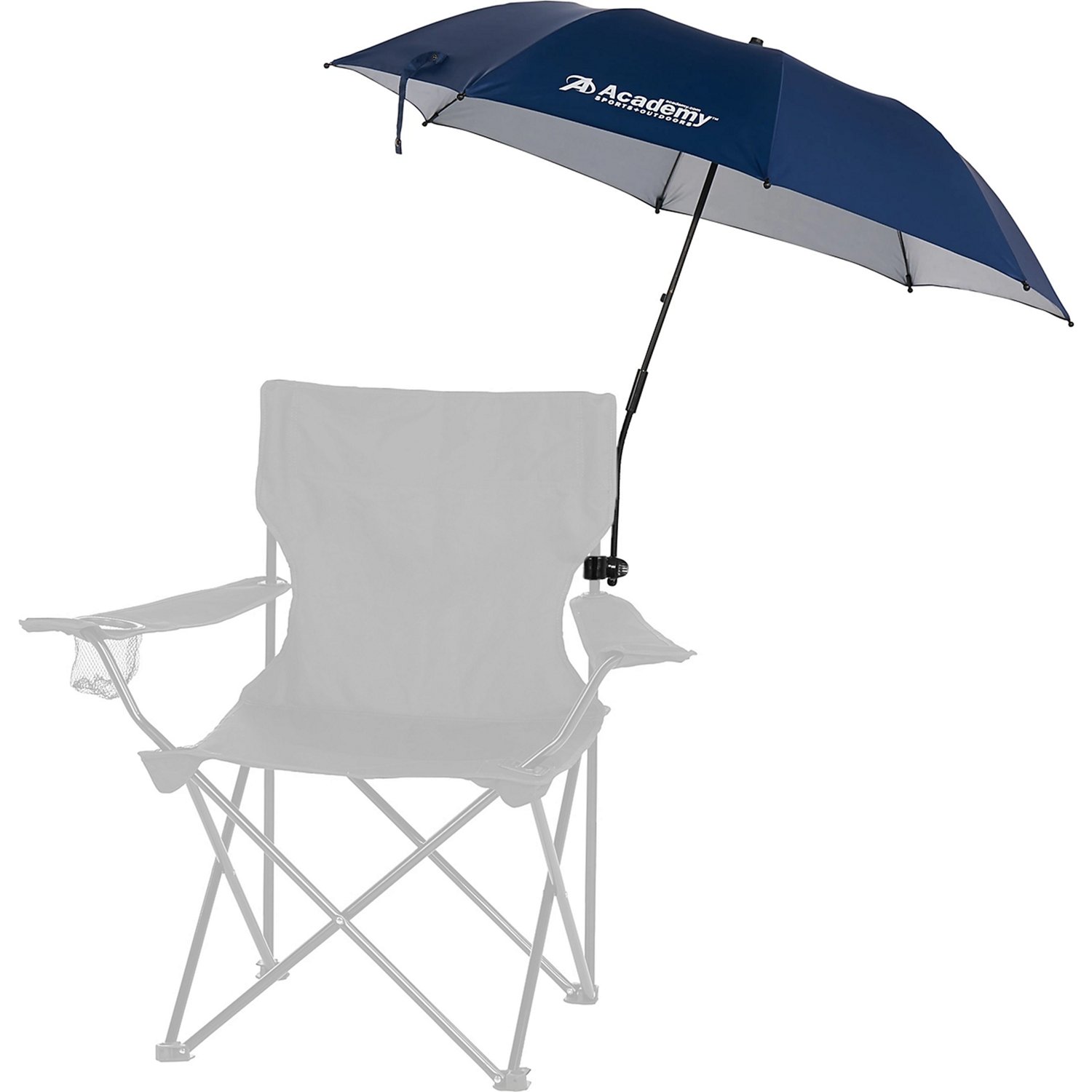 Enjoy a hot summer day with the Academy Sports + Outdoors™ 3.4' Clamp-On Umbrella, which features UPF 50 sun protection. This umbrella is designed with a bottom clip that attaches to most folding chairs (chair not included) and a flexible shaft for adjustable shade coverage. 2-piece construction allows quick and easy breakdowns. Includes a matching polyester carry bag.