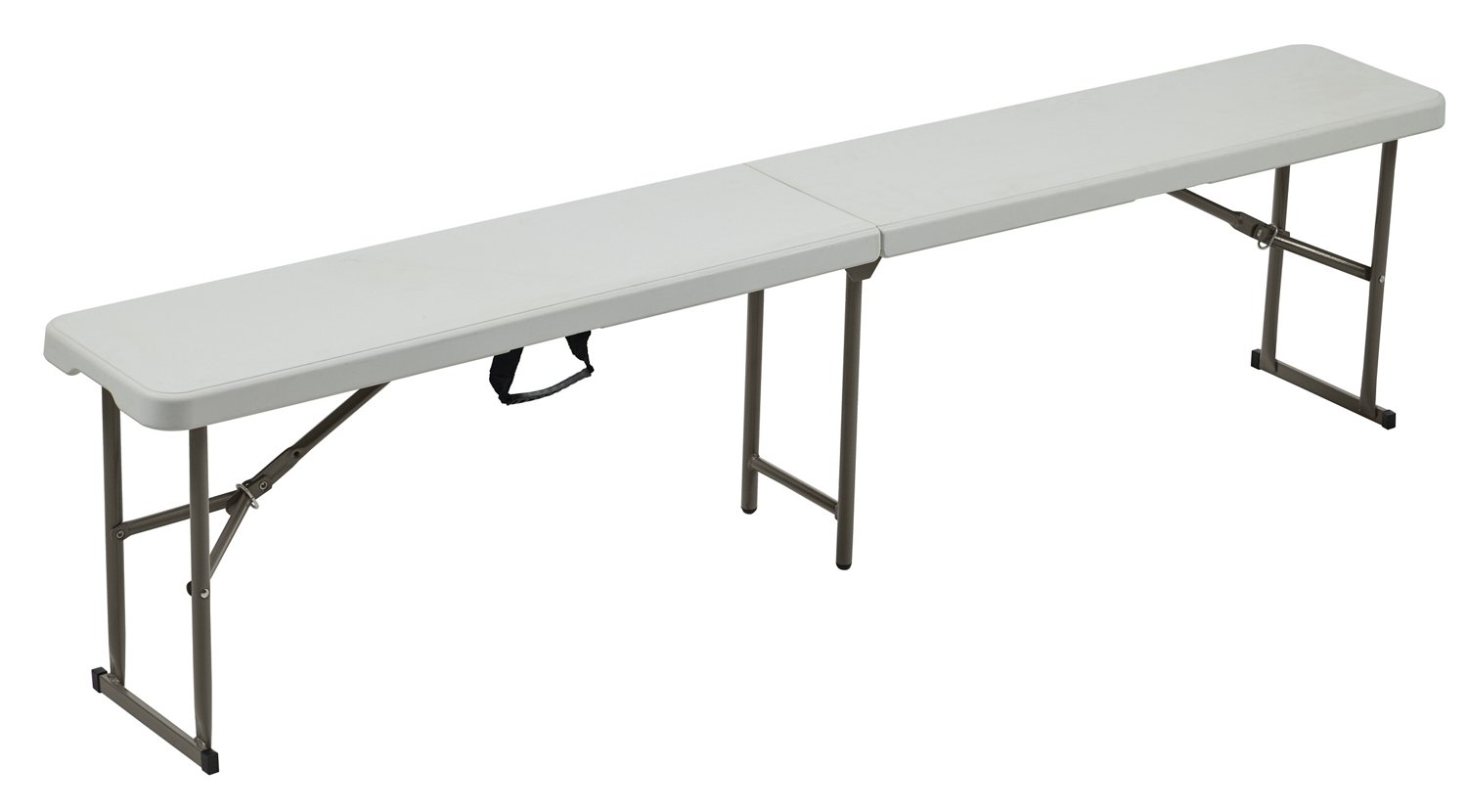 Set up comfortable seating indoors or outdoors with the Academy Sports + Outdoors 6 ft Fold-in-Half Bench. The HDPE bench top offers a durable space to sit, while the steel frame resists rusting for lasting strength. When you need to put the bench away, you can fold the legs flat and the bench in half and grab the carry handle to comfortably tote it away.