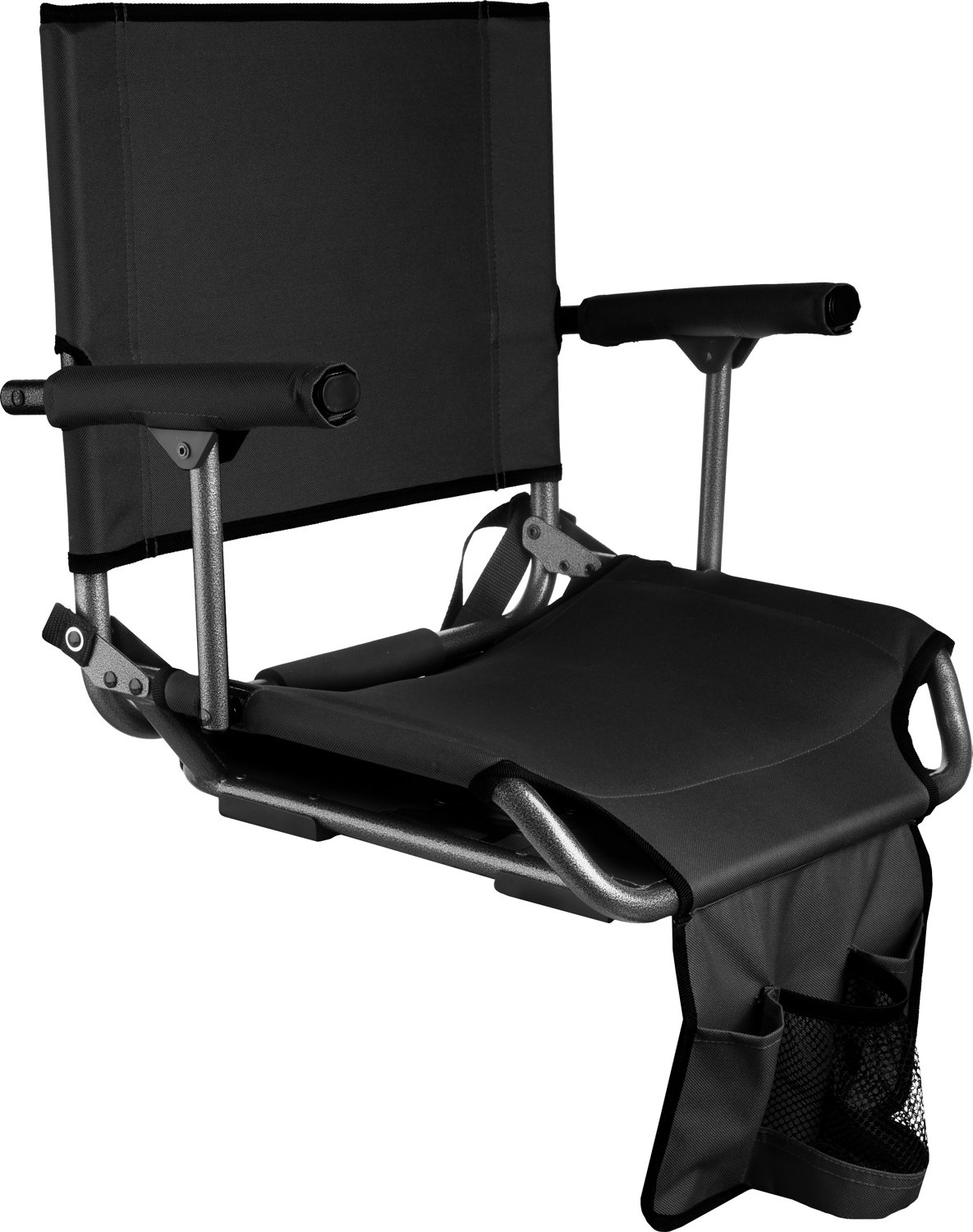 Enjoy your next game or stadium event in comfort with the Academy Sports + Outdoors Hard Arm Stadium Seat. At just under 6 lbs. this chair is easy to carry with an adjustable strap and padded carry handle, and the bleacher clamp ensures secure seating wherever you take it. The hard arms provide comfort and ease of standing up, plus there's a built-in front pocket with a cup holder for your beverage.