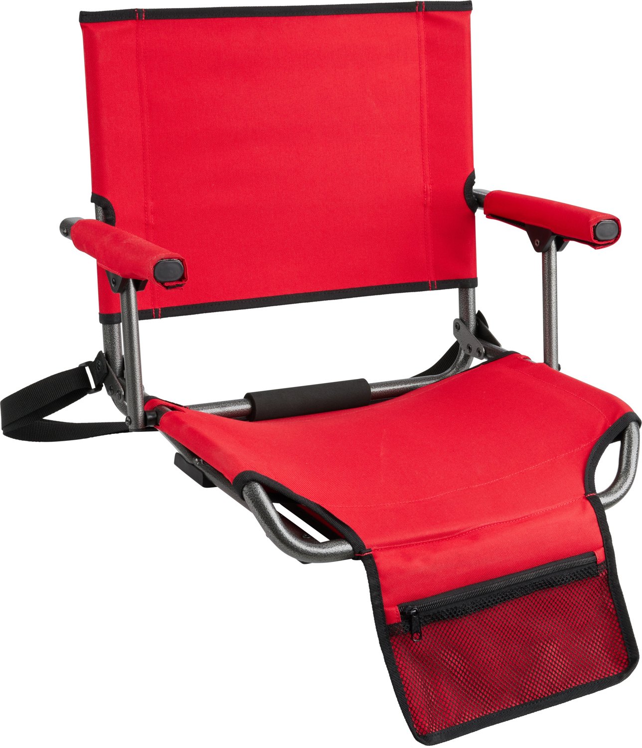 Use the Academy Sports + Outdoors Hard Arm XL Stadium Seat for comfort at your next sports game. Made of steel and polyester materials for durability, this stadium seat is great for secure seating at stadiums, sports fields, concerts and more. The stadium seat also features a built-in front pocket and cup holder for convenience.