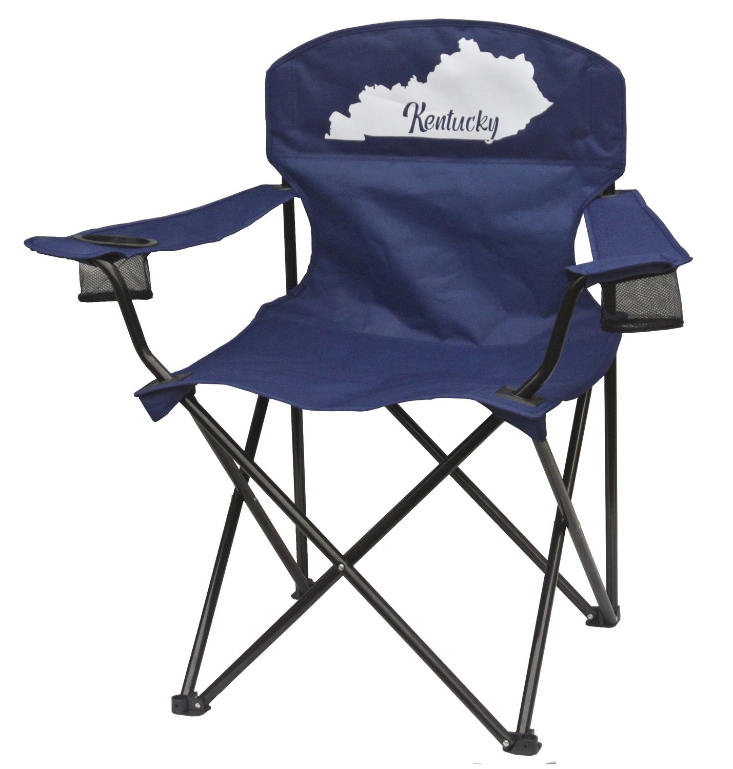 Represent your Kentucky pride with the Academy Sports + Outdoors Kentucky Folding Chair. This folding chair features a powder-coated steel frame with a polyester seat for durability and padded armrests for added comfort. The Kentucky graphics show your love for your state.