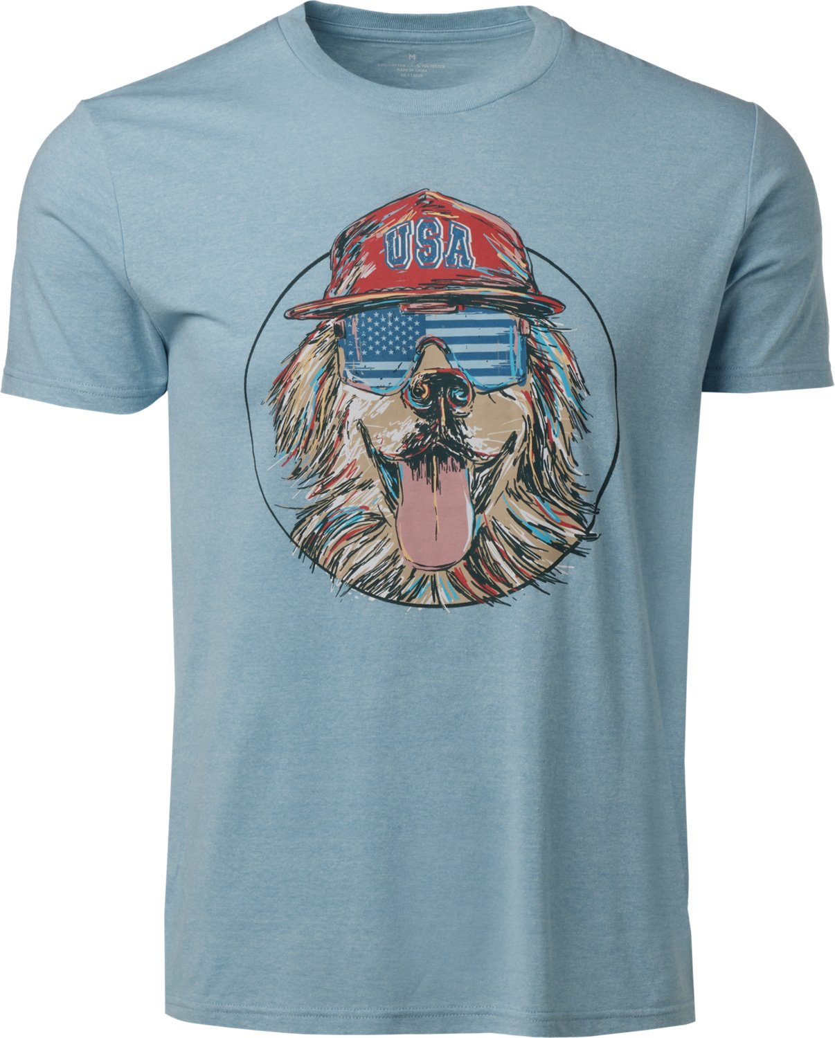 Show off your sense of style with the Academy Sports + Outdoors Men's Americana USA Dog with Hat T-shirt. The cotton and polyester construction provides a blend of comfort and durability, while the graphic design on the front adds an eye-catching appearance.