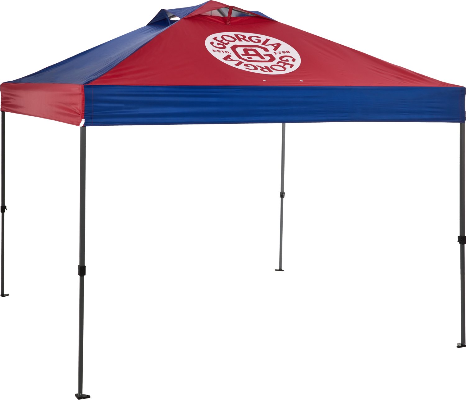 Set up a tailgate with the Academy Sports + Outdoors 10 ft x 10 ft Straight One Push Georgia Canopy. This straight canopy has a one-push design that allows for easy set-up and state colors to represent!