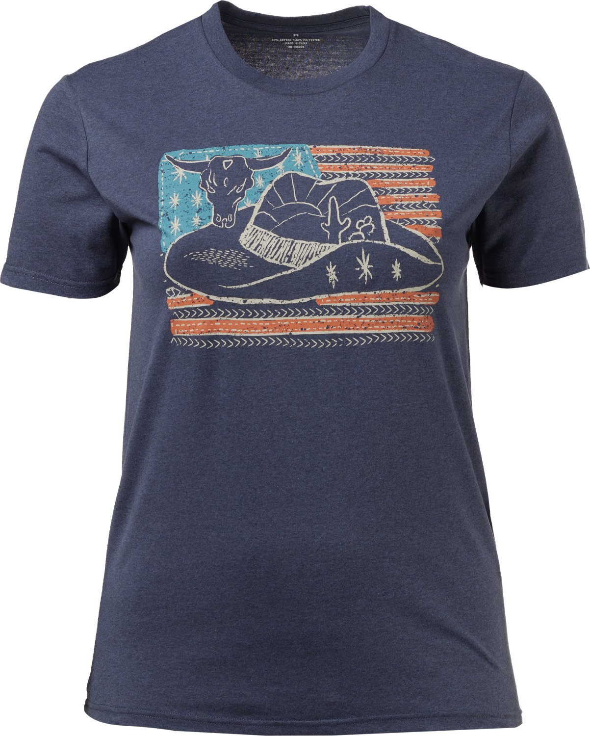Show off your sense of style with the Academy Sports + Outdoors Women's Americana Western Flag T-shirt. The cotton and polyester construction provides a blend of comfort and durability, while the graphic design on the front adds an eye-catching appearance.