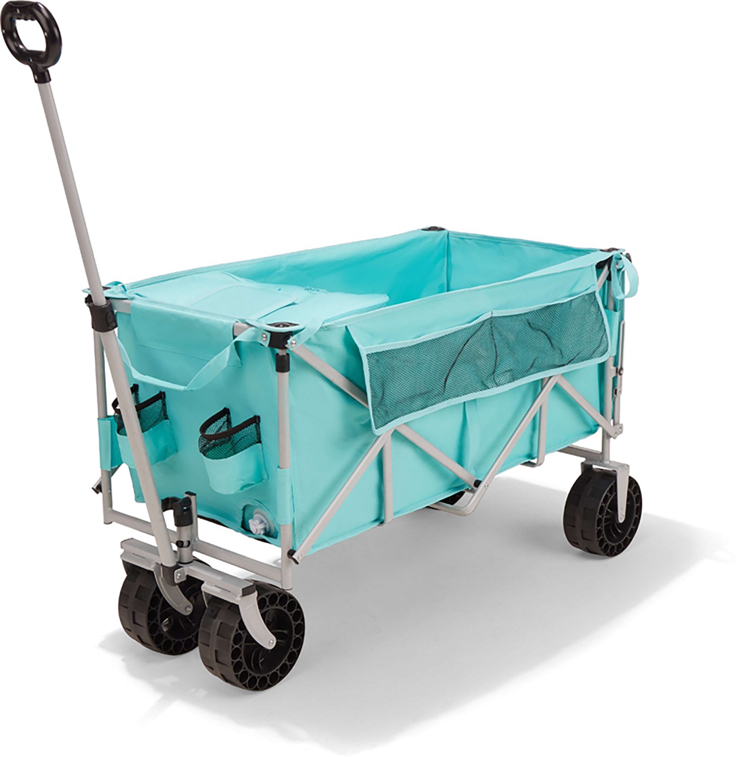 Carry all your goodies to the sand in one go with the Academy Sports + Outdoors XL Beach Wagon. The 600D polyester fabric is durable, and the steel tube with powder coat protects against rusting. The telescoping handle extends your reach, and the folding design allows for compact storage.
