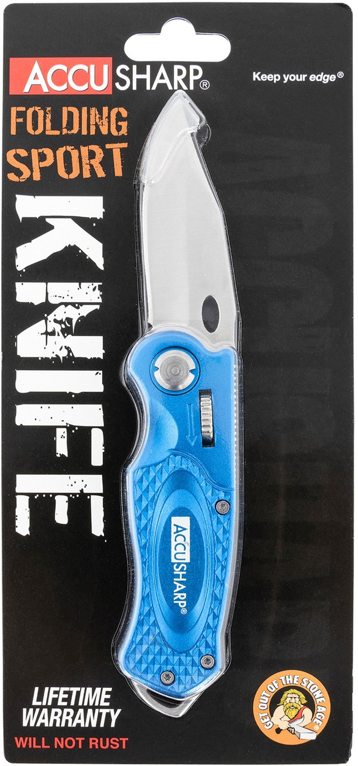 The AccuSharp 3 in Folding Sport Knife is a versatile cutting tool featuring a strong stainless-steel blade and a durable aluminum handle. The blade folds with a wheel lock for safety, while a convenient belt clip allows easy portability.