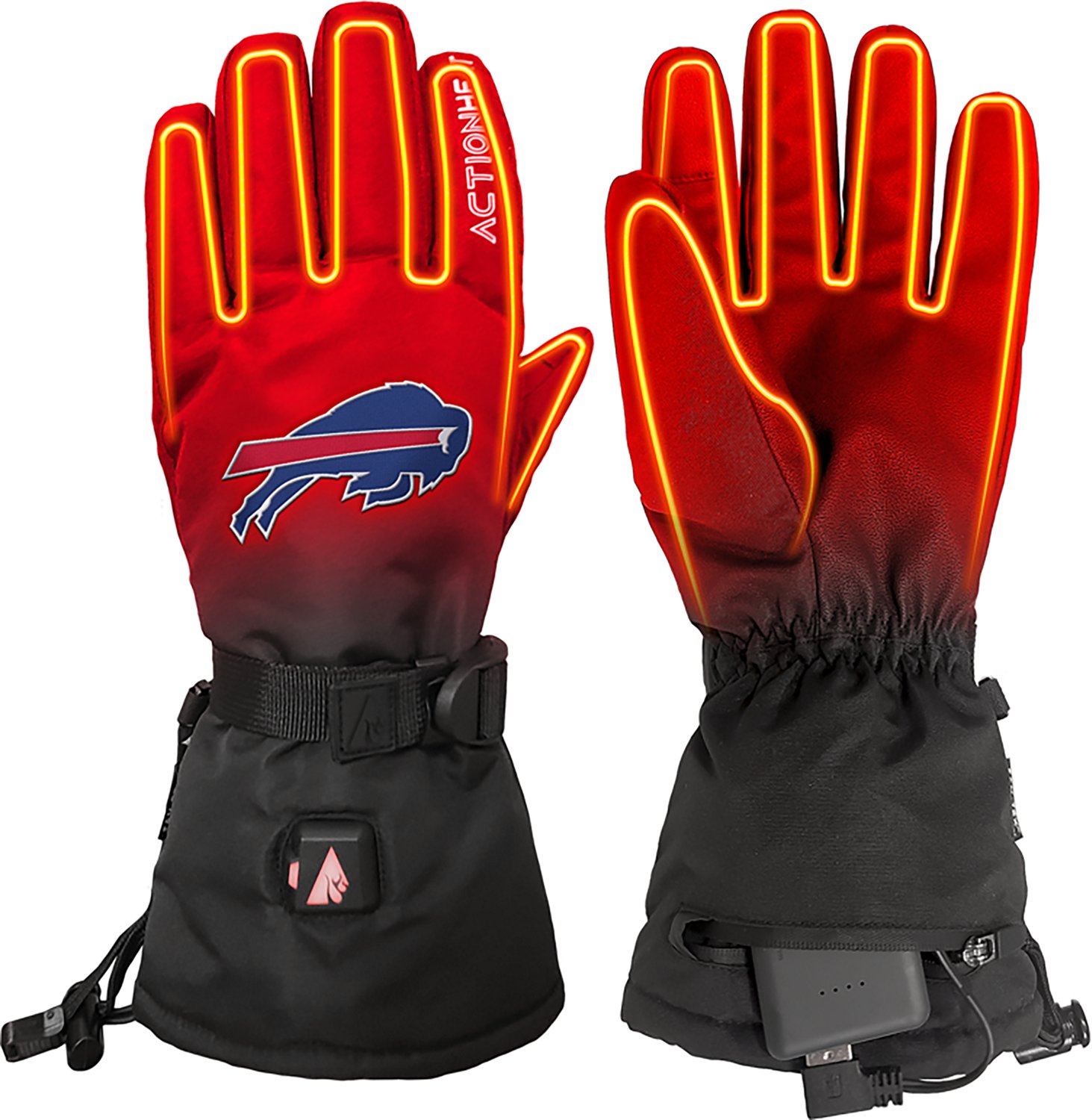 Stay warm with confidence with the ActionHeat Adults' Buffalo Bills 5V Heated Winter Gloves. The built-in heating system runs on battery power and lasts for hours per charge, and the Thinsulate insulation locks in heat while keeping out the chill.