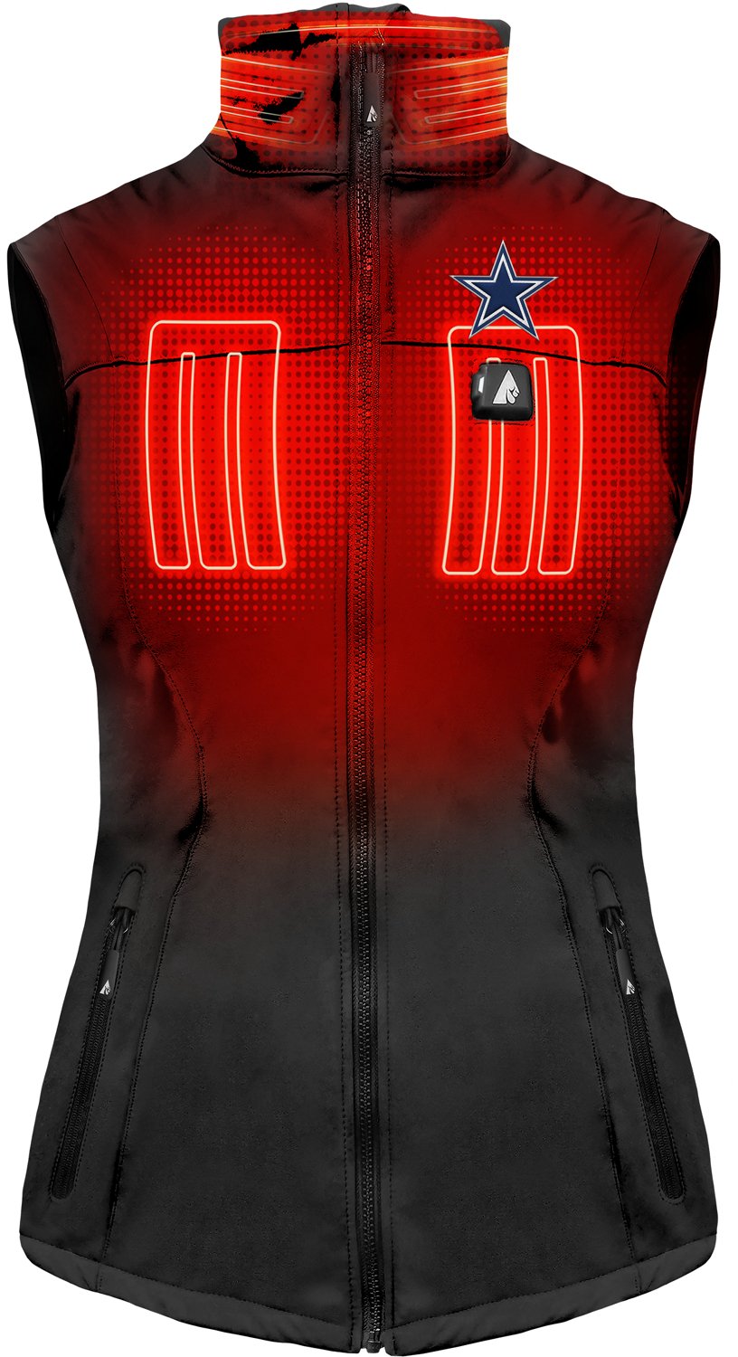 Elevate your temperature whether tailgating or at the stadium in the ActionHeat Men's Cowboys 5V Puffer Battery Heated Jacket. This puffer jacket features a rugged, insulated design offering protection against extreme weather while enhancing your game-day wardrobe. This stylish and practical jacket reaches a comfortable temperature of 150 degrees Fahrenheit and functions as a portable battery charger for your USB-powered devices.