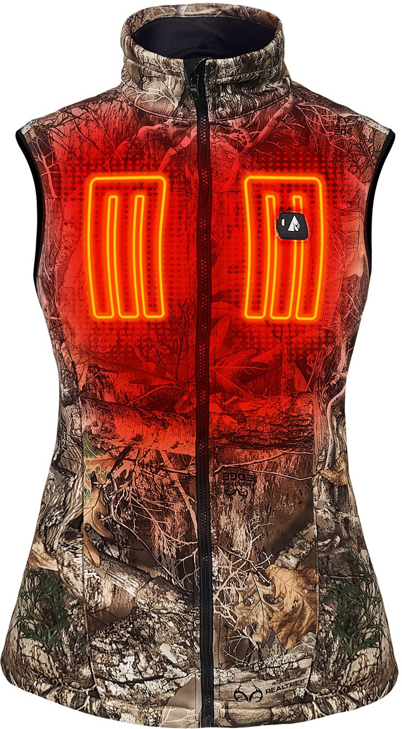 Stay warm during your hunting excursion with the ActionHeat Women's 5V Battery Heated RT Camo Vest. The 100% polyester interlock construction offers long-lasting use, and the ActionFlex design with built-in carbon fiber heating panels deliver adjustable warmth and softness. The 2 YKK zippered pockets with a hidden battery pocket provide concealment for your gear.