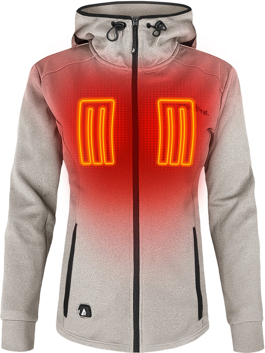 Plug in and get warm with the ActionHeat Women's Slim Fit 5V Hoodie. The polyester and spandex material stretches to move with your boy. Battery-powered infrared panels are strategically placed to deliver active warming around your core, keeping you warm in the coldest conditions. The discrete battery bank provides consistent power and can also charge your electronic devices.
