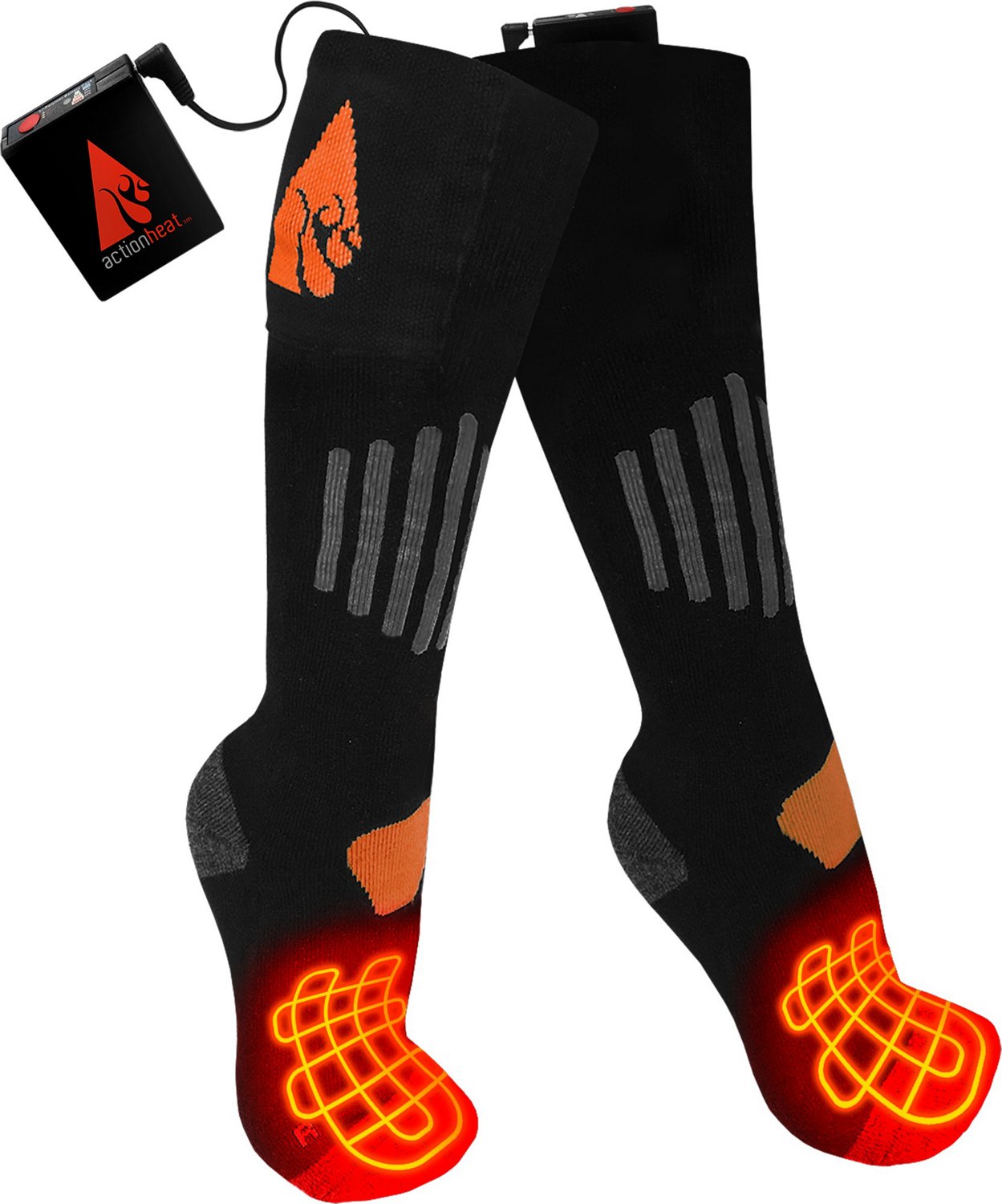 Includes 2 ActionHeat wool blend socks, 2 3.7 -volt 2.2 AH lithium-polymer rechargeable batteries and 1 dual battery charger kit