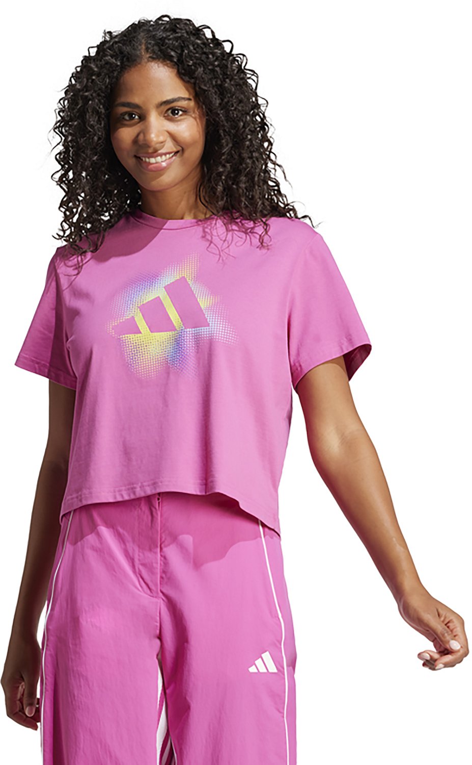 Show off your fun side with the adidas Women's Dance Graphic T-Shirt. The cotton material provides a comfortable feel, while the graphic design offers a stylish look.