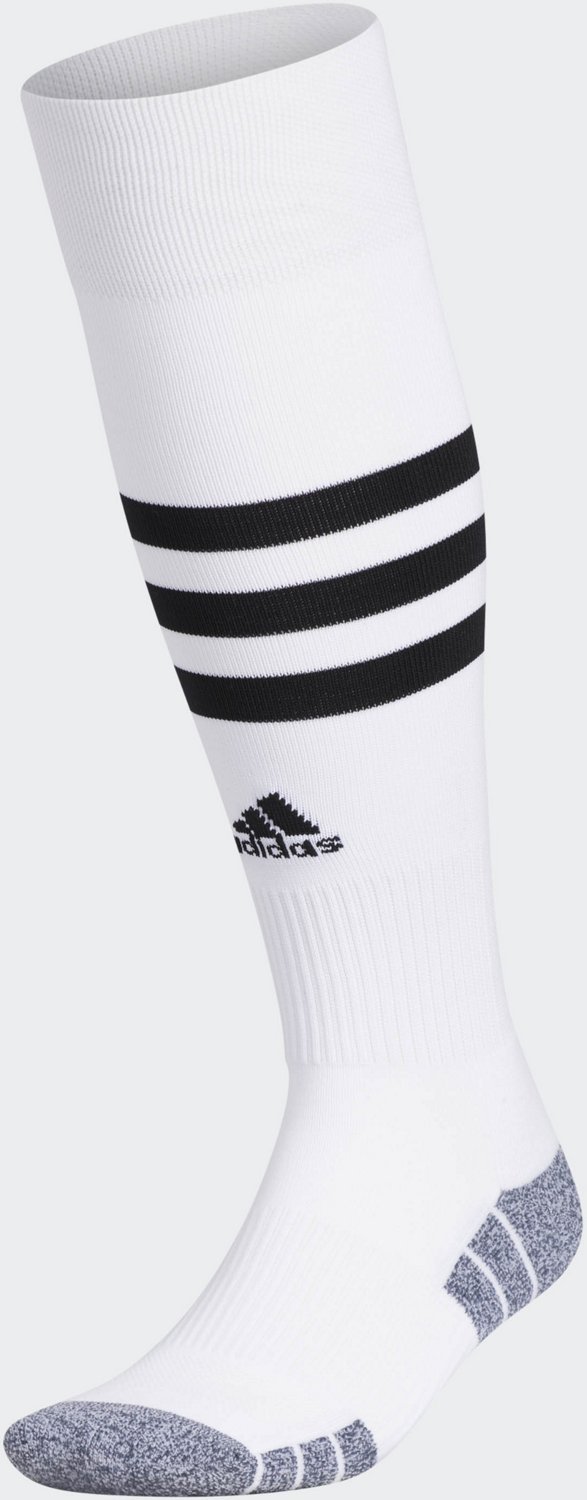 Score some points for comfort in the adidas 3-Stripe Hoop OTC Soccer Socks. The arch and ankle compression supplies a secure and supportive fit, while the nylon blend creates a comfortable and flexible feel. The moisture-wicking yarn and mesh channels help keep your feet cool and dry.