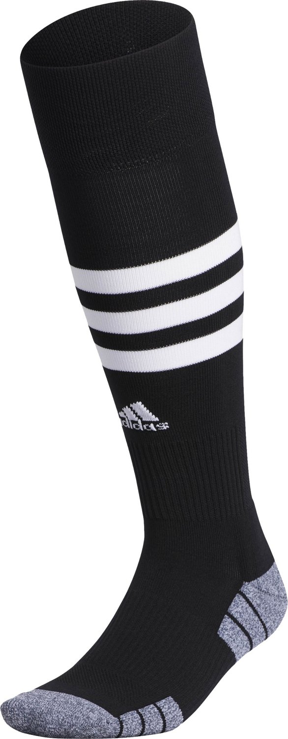 Score some points for comfort in the adidas 3-Stripe Hoop OTC Soccer Socks. The arch and ankle compression supplies a secure and supportive fit, while the nylon blend creates a comfortable and flexible feel. The moisture-wicking yarn and mesh channels help keep your feet cool and dry.