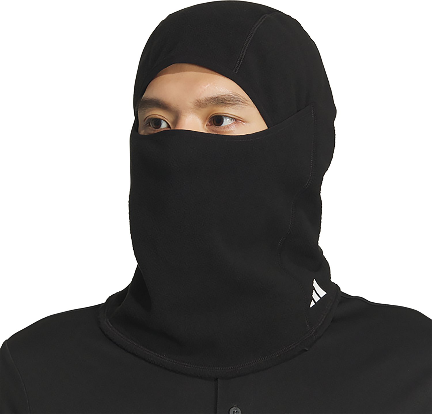 Bolster protection around your head while working out in chilly conditions with the adidas Adults' Cold Weather Balaclava. Its polyester material is built for frequent use, and you can choose one of the four different wearing options that feel best for you. The fabric's lightweight composition sets a relaxed wearing experience, and the embroidered adidas logo helps make his headwear item stand out.
