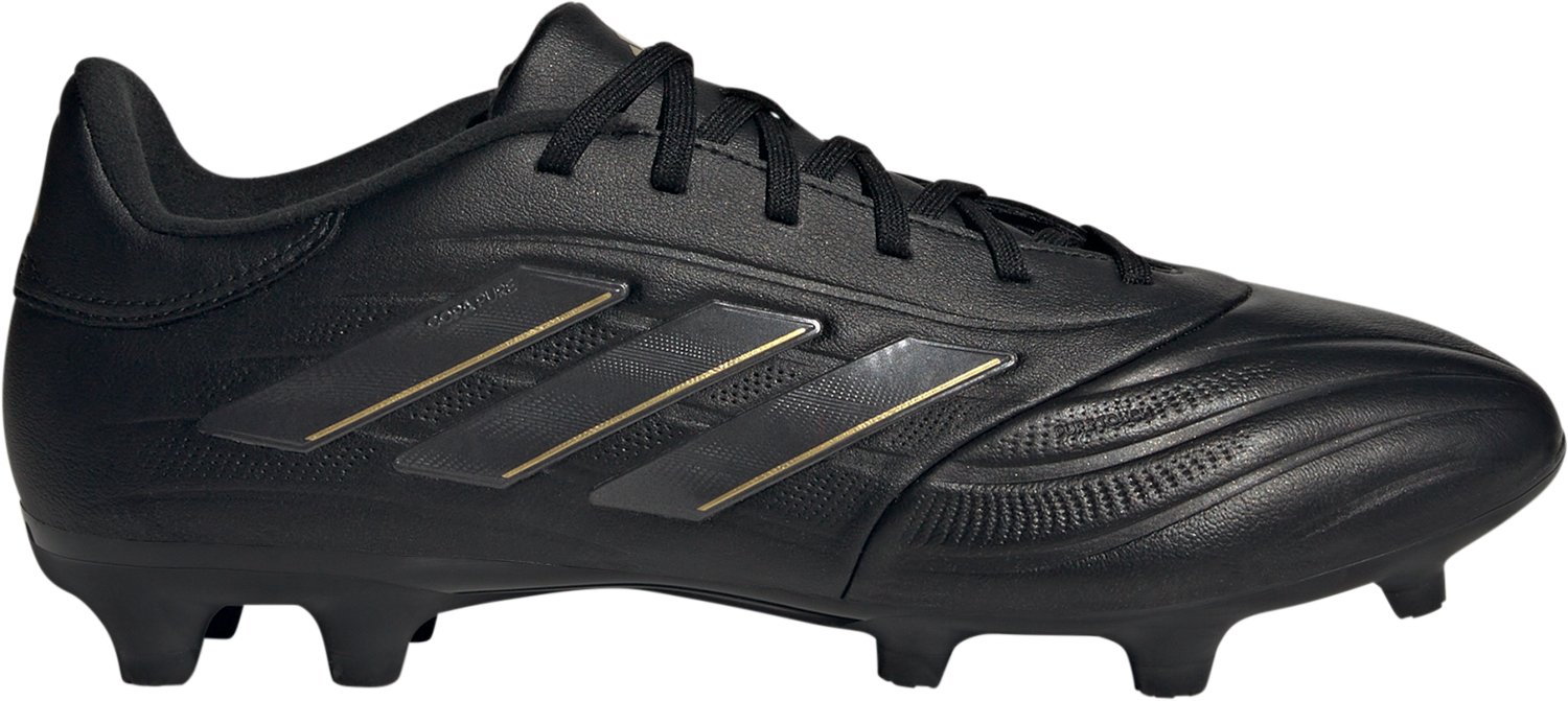 Show off your soccer skills wearing the adidas Adults' Copa Pure 2 League Soccer Cleats. The synthetic leather upper construction offers long-lasting use and a distinguished look, and the premium cow leather vamp design delivers a soft touch for optimal control. The 3-Stipes logo shows your brand pride, and the firm ground outsoles with a stud configuration ensures high-performance traction.
