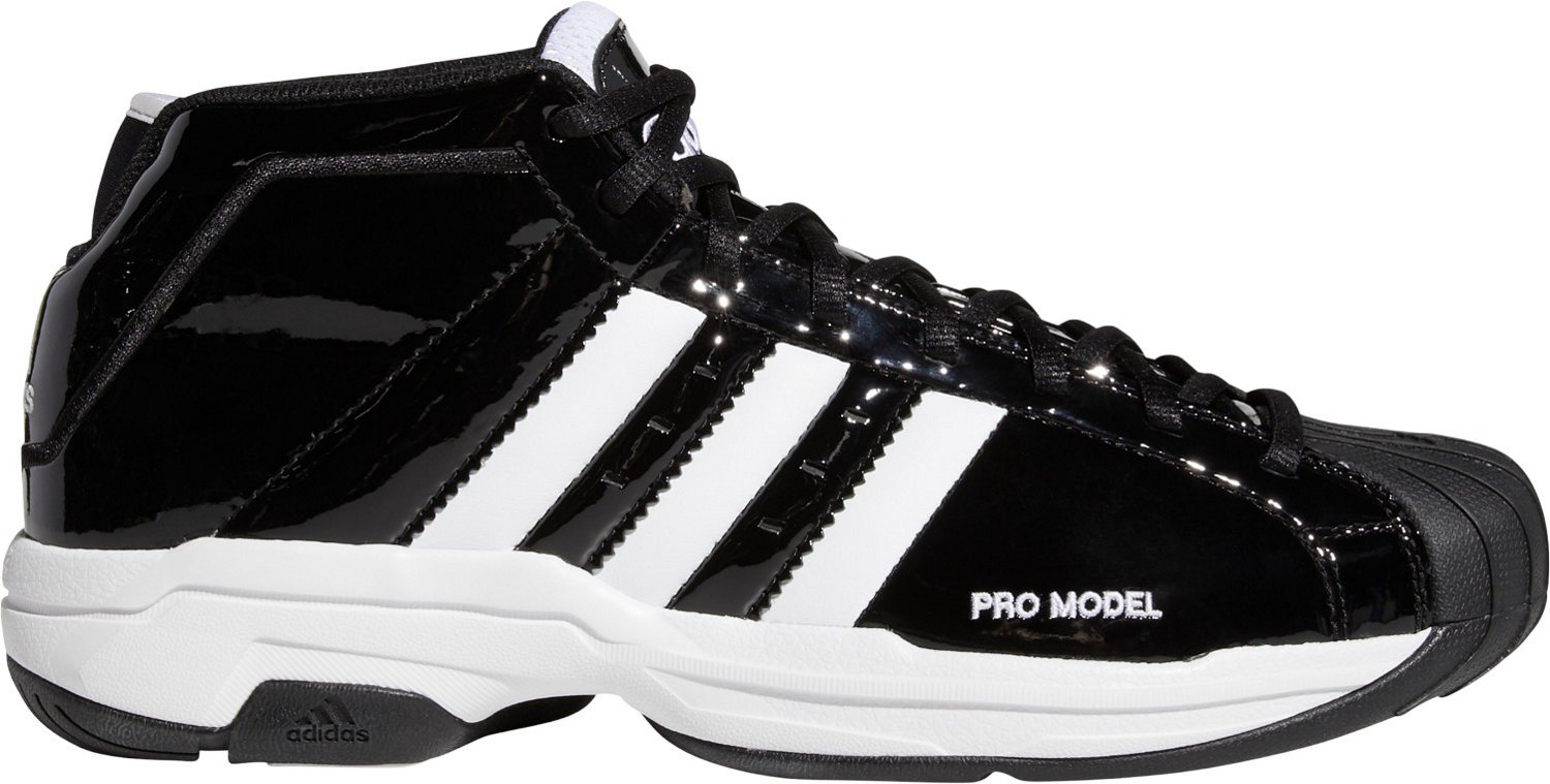 Play a game of pickup or practice your shots with the adidas Adults' Pro Model 2G Basketball Shoes. The patent leather uppers are lightweight, yet durable, and the improved lockdown heels keep your feet in place. The lace closures provide a secure fit, and the revamped appearance upgrades a classic B-ball shoe for a show-stopping look on and off the court.