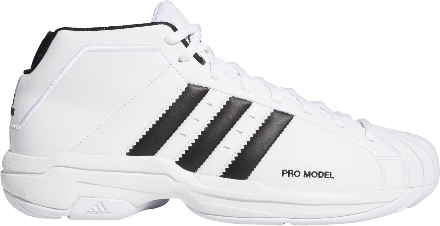 Play a game of pickup or practice your shots with the adidas Adults' Pro Model 2G Basketball Shoes. The patent leather uppers are lightweight, yet durable, and the improved lockdown heels keep your feet in place. The lace closures provide a secure fit, and the revamped appearance upgrades a classic B-ball shoe for a show-stopping look on and off the court.